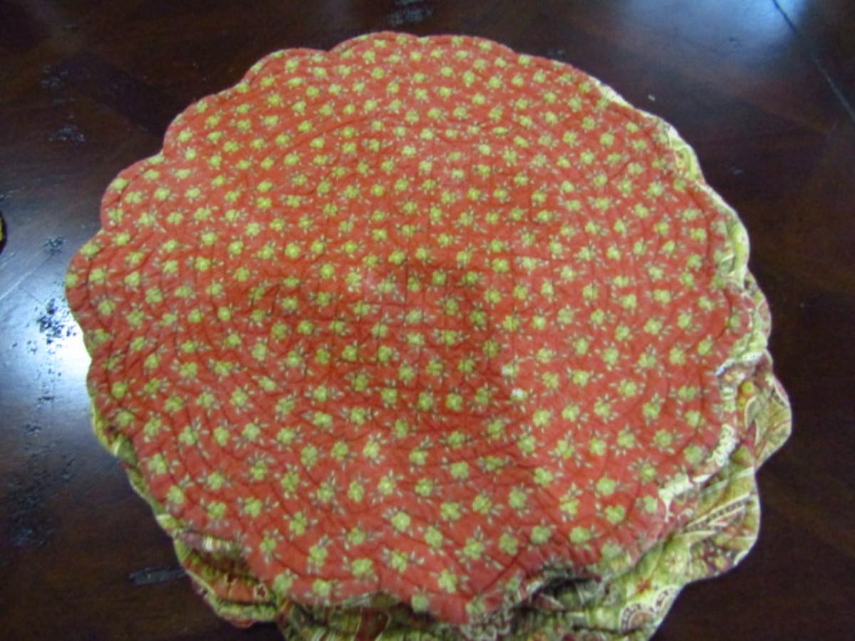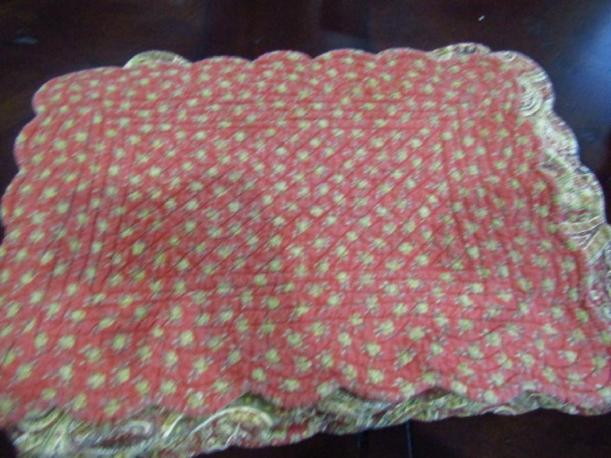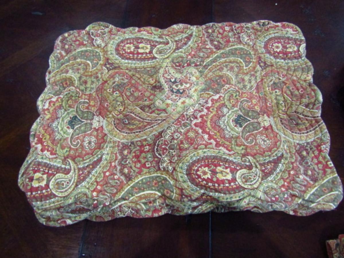 Linen Placemats and Napkins- Dark Red with Paisley (DR). Rectangular placemats- 12 pieces, round placemats- 7 pieces, napkins- 14 pieces. Placemats are double sided.