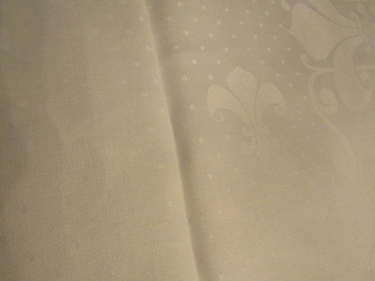 Linen Table Cloth and 12 Napkins- Fleur De Lis and Dots Design- Approx 102" x 64" (C)