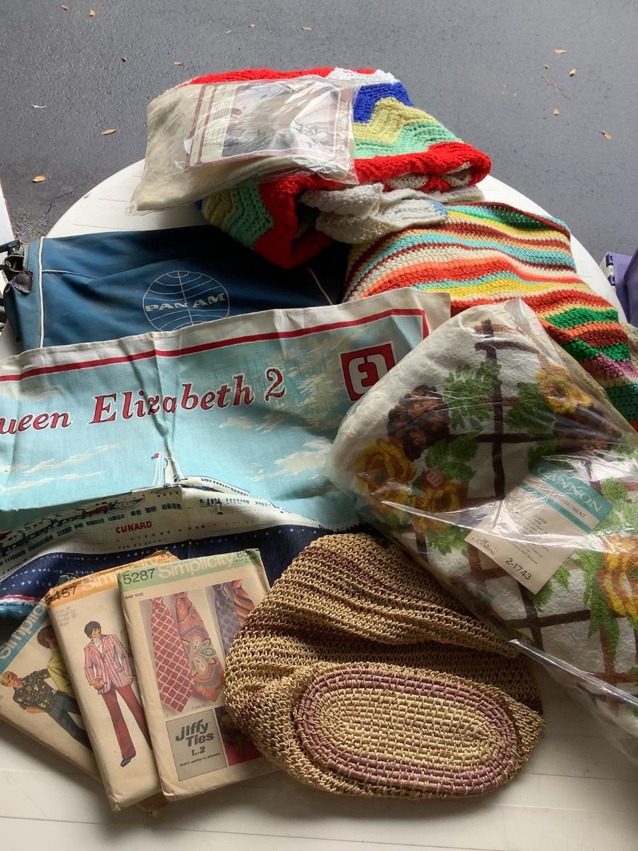 Linens- 2 quilts one square one round, NIB vintage towels, beach bag, Queen Elizabeth