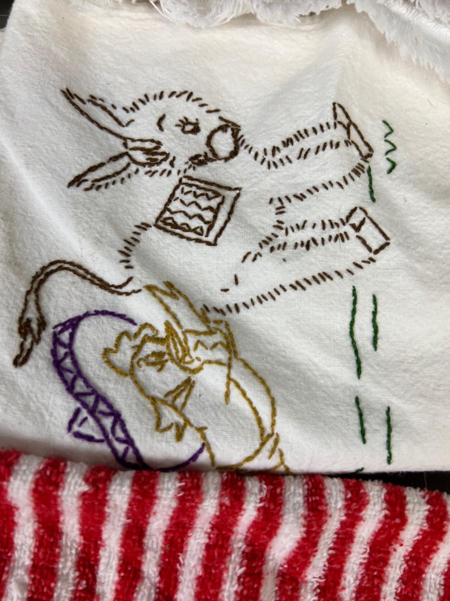 Linens Kitchen Towels, Vintage fabrics and Embroidery