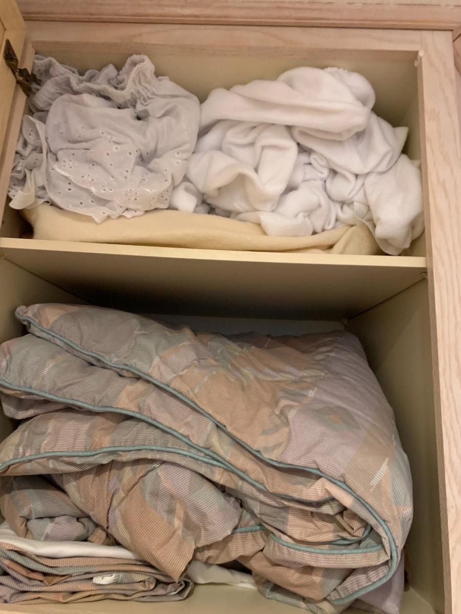 Lot includes everything you see in the closet. Blankets, sheets, comforters, reading pillow and more!