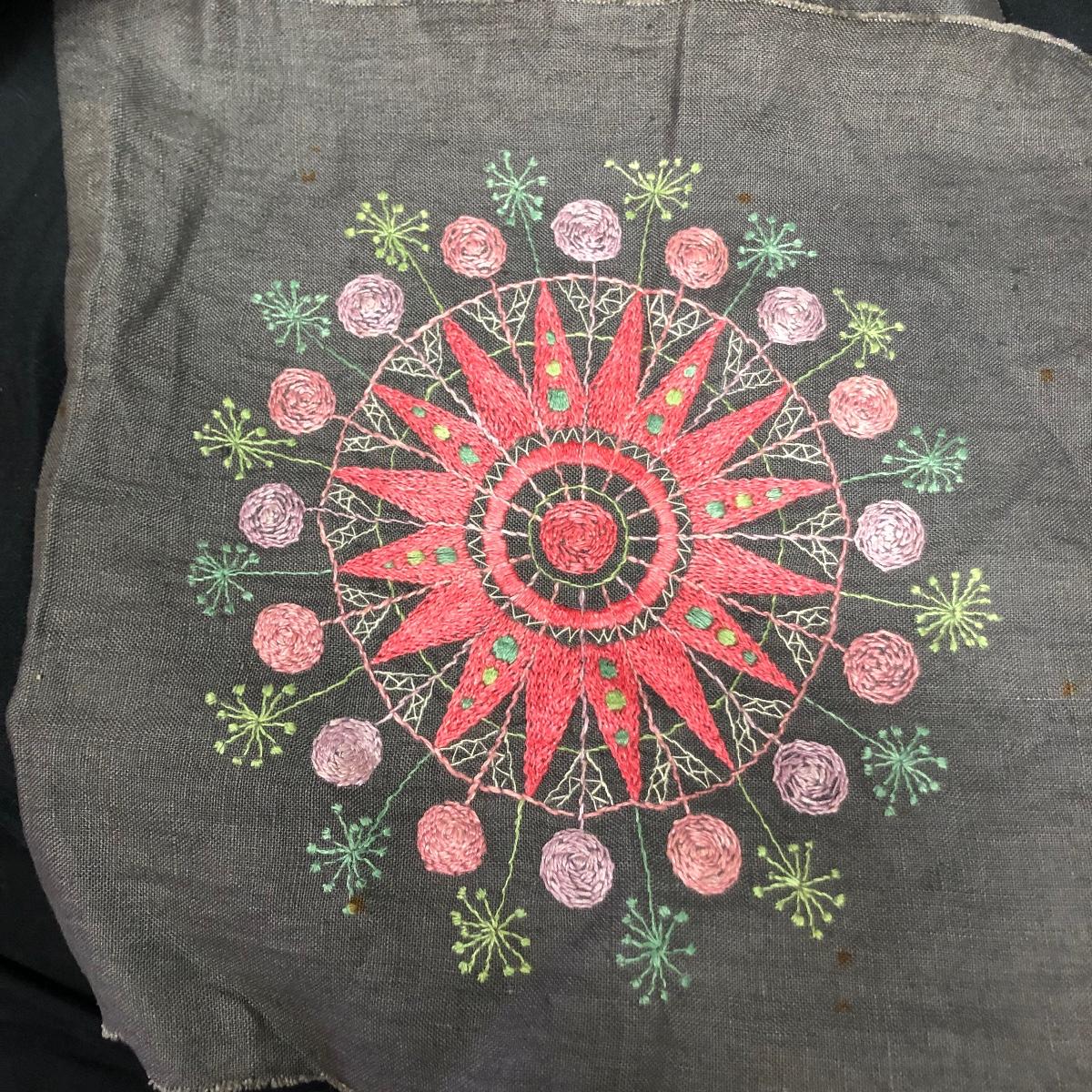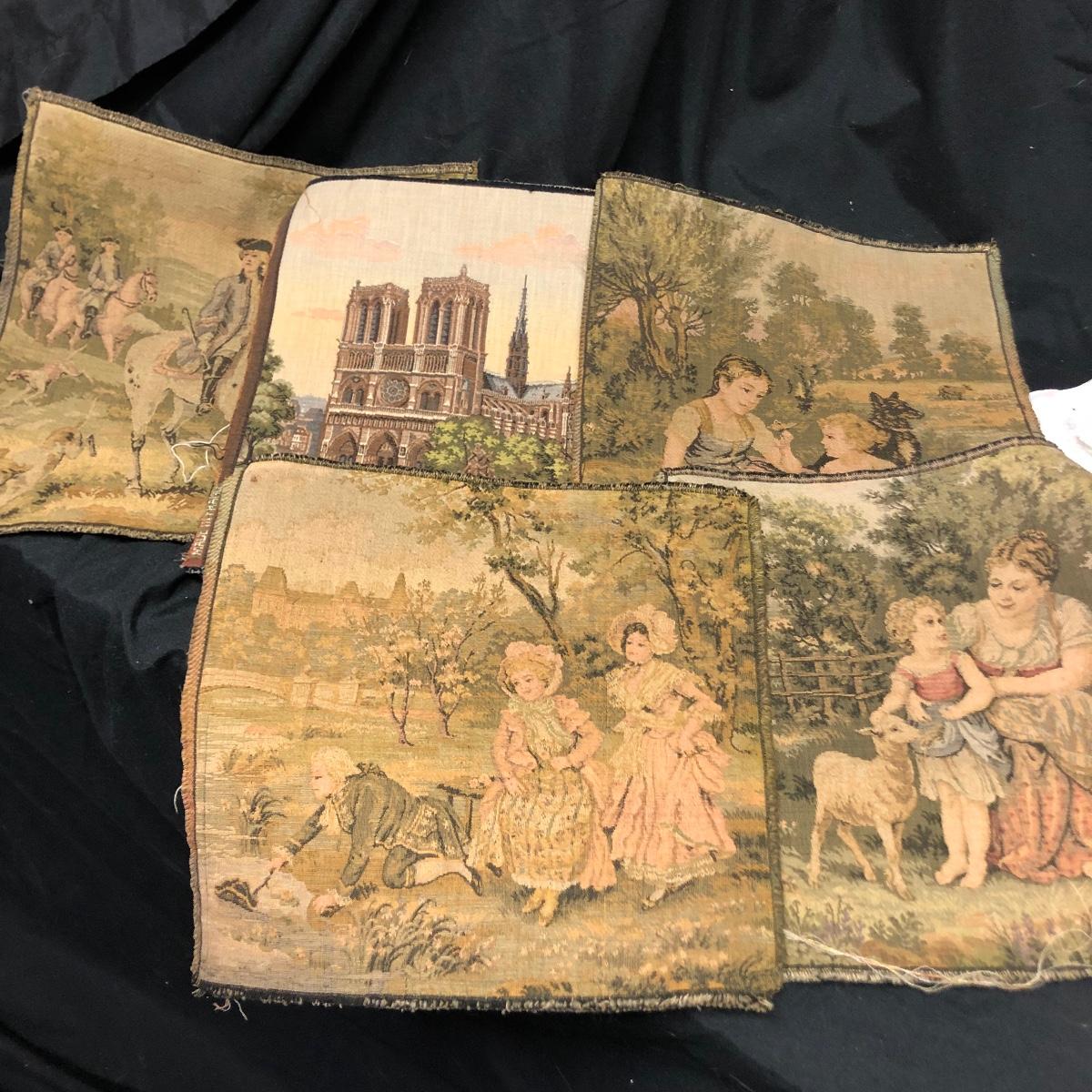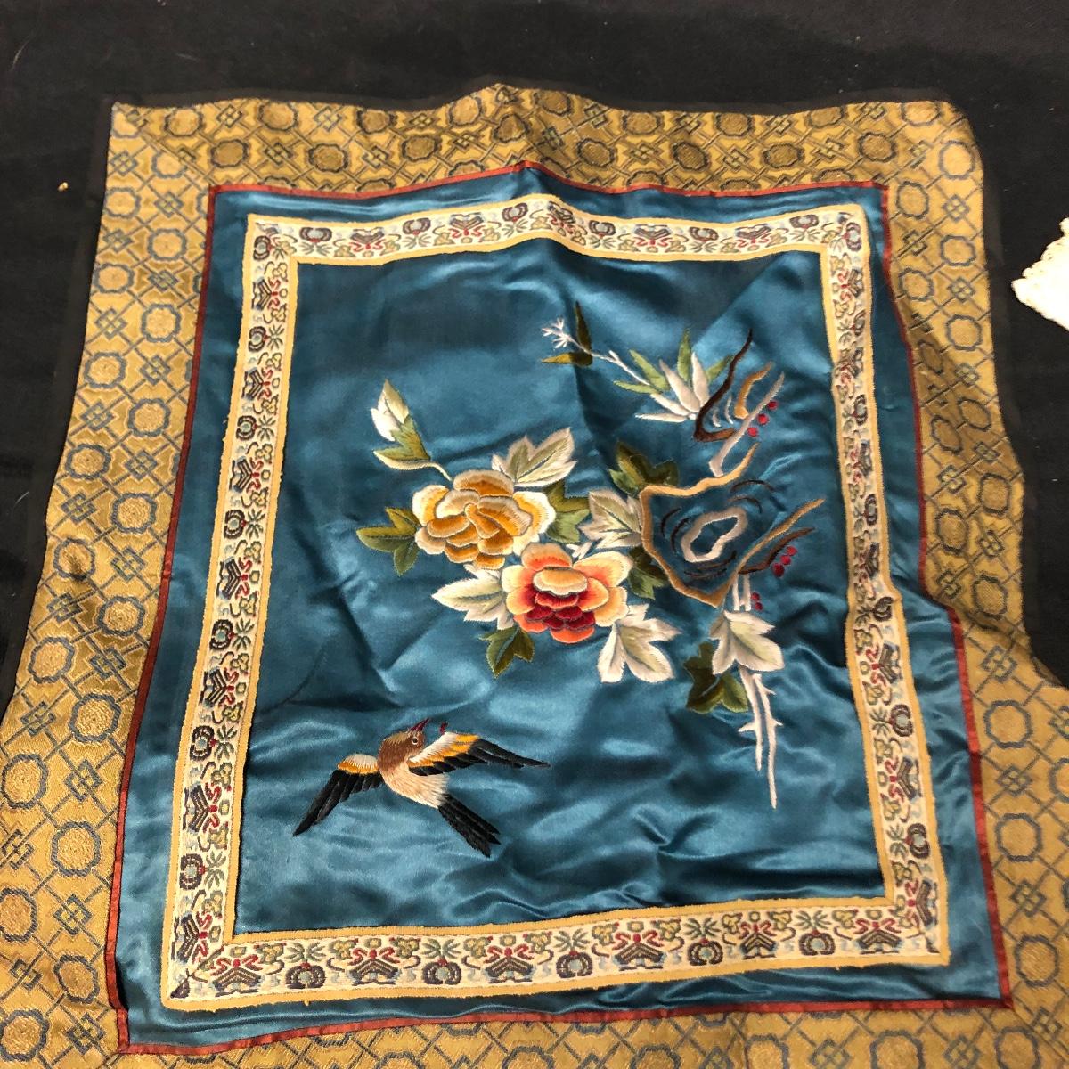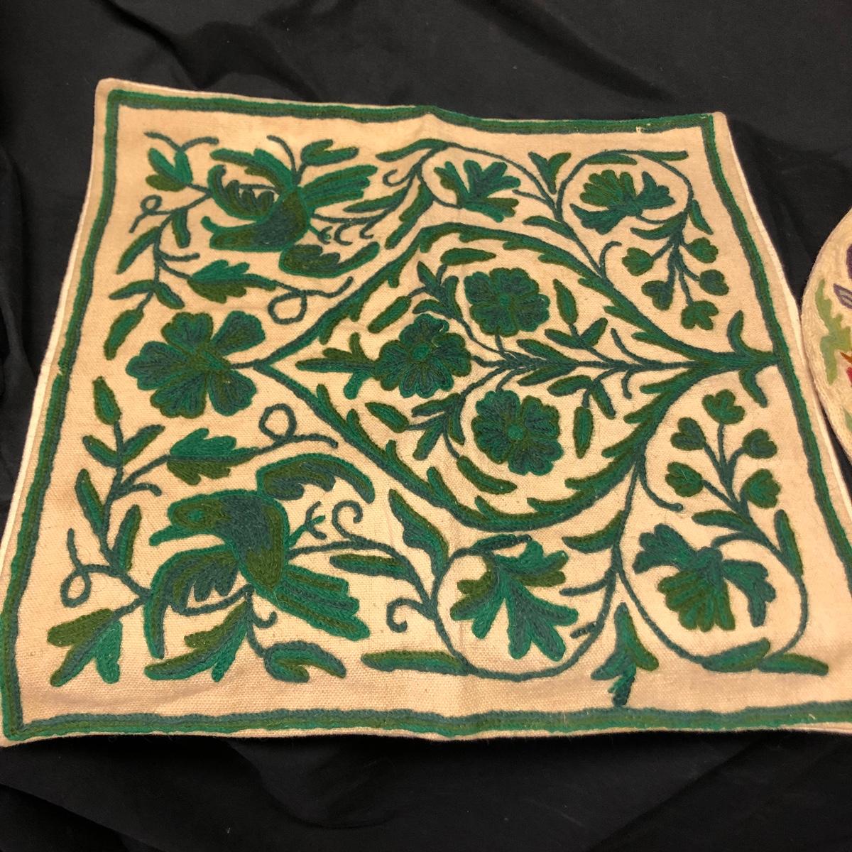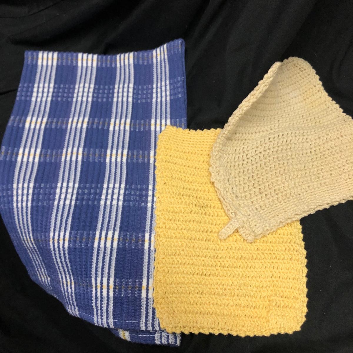 Lot includes a plethora of table linens in a variety of colors and materials. There is Irish linen, hand loomed rug, doilies, an apron, cloth napkins, and more. Largest tablecloth measures 64” x 84”.