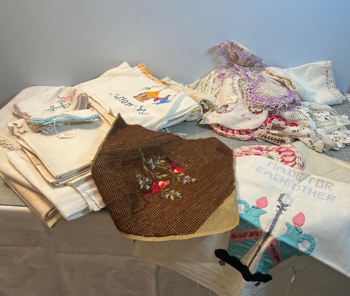 LINENS, Mostly Hand Crafted, Vintage Doilies etc.