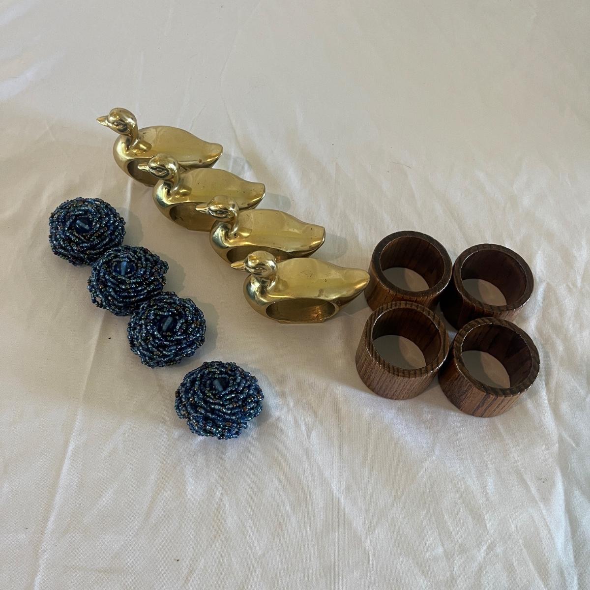 Lot includes brass, wood and beaded napkin rings, large amount of napkins in a variety of colors, placemats in a variety of styles and colors, tablecloths and more. Largest tablecloth measures 56” x 106”. One set of placemats have stains, see pictures.