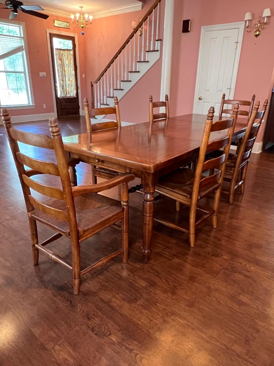 LINK TAYLOR ~ Homespun Maple ~ Maple Dinner Table & Six (6) Ladder Back Rush Seat Chairs