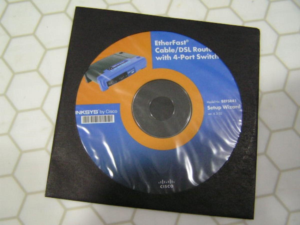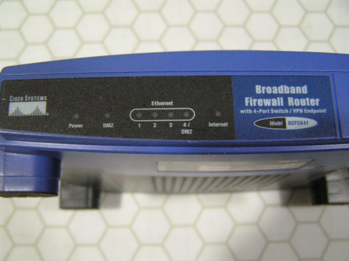 LINKSYS by Cisco, Cable/DSL Router w/4-Port Switch. Mod# BEFSR41. EtherFast 10/100. Pulled from a working network, known good. W/power supply, lights up. BONUS – Linksys SM01 stack or wall mount plate. With install CD and OE box A-OK.