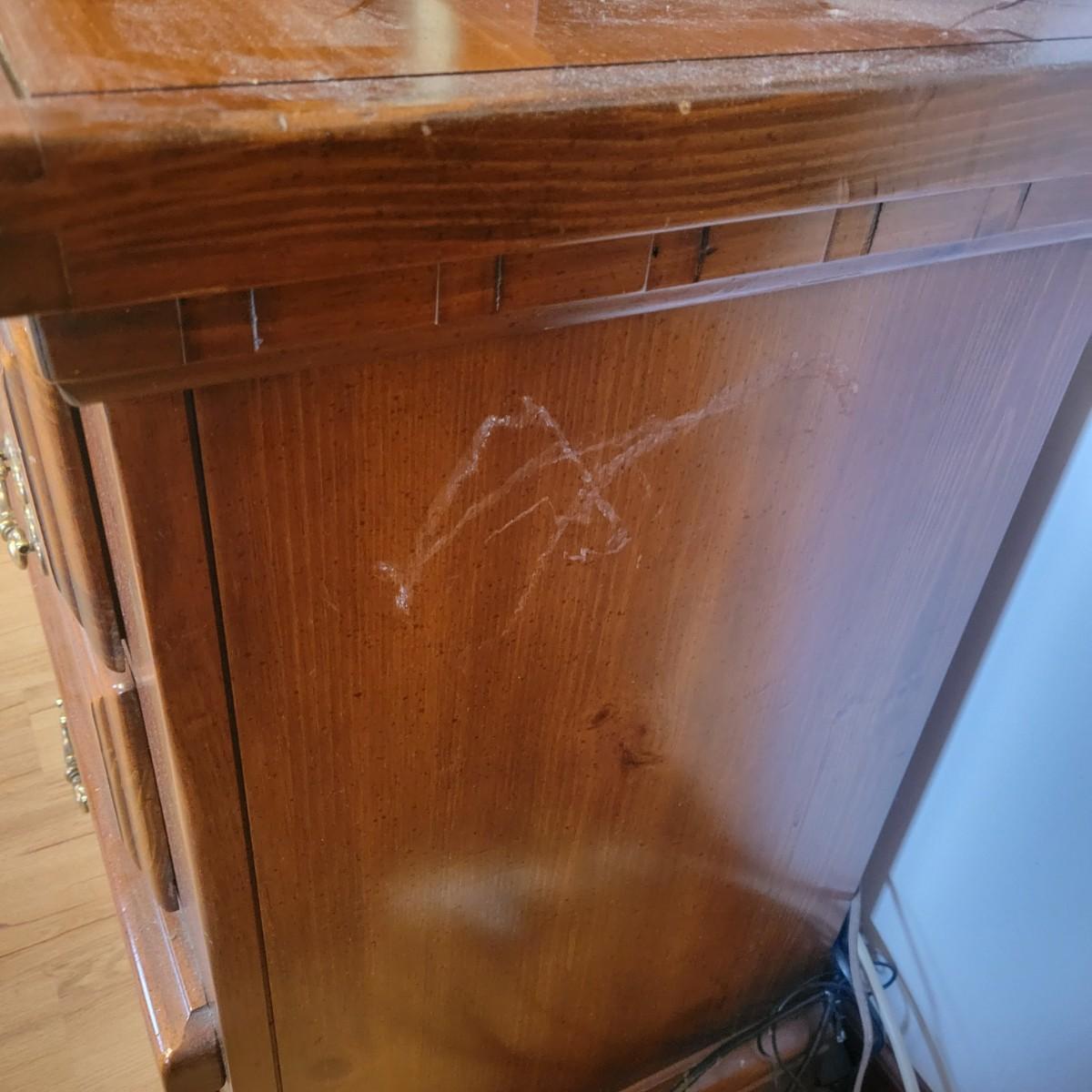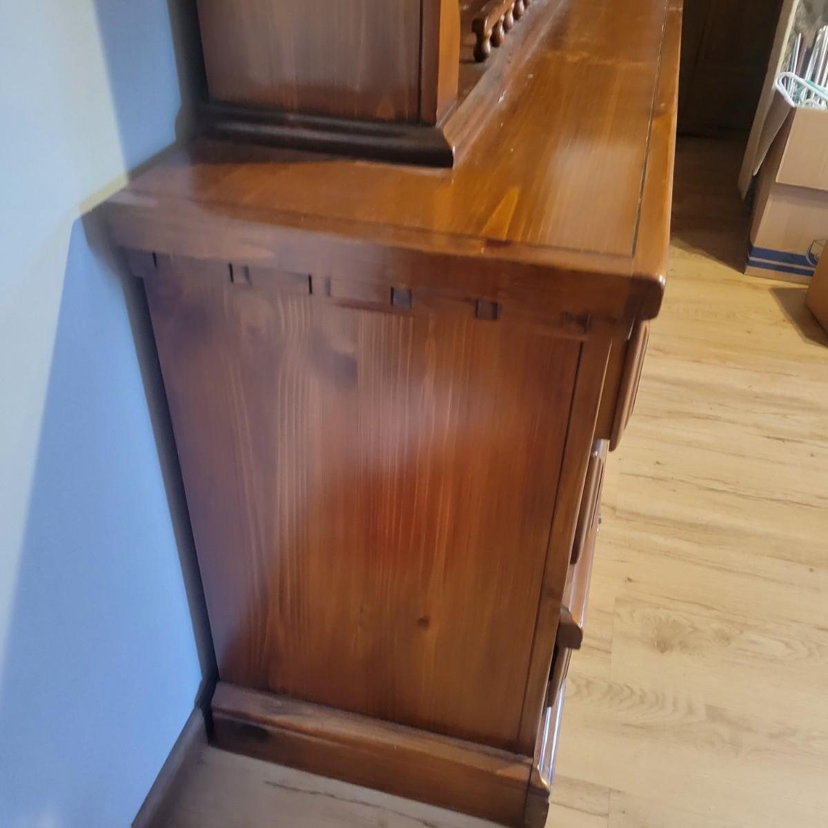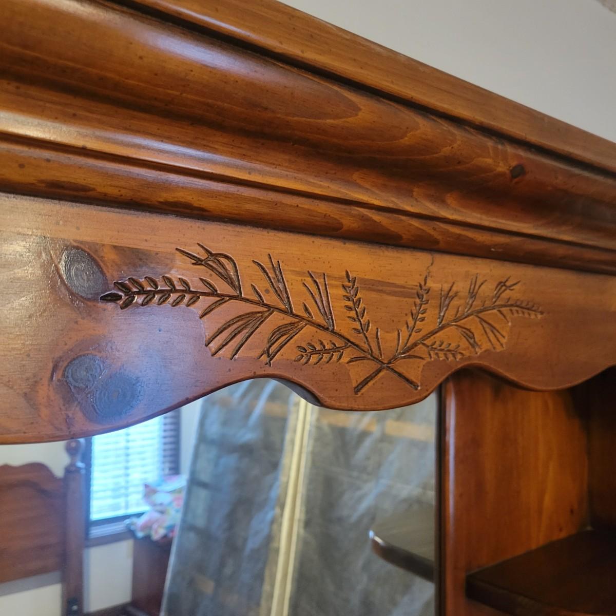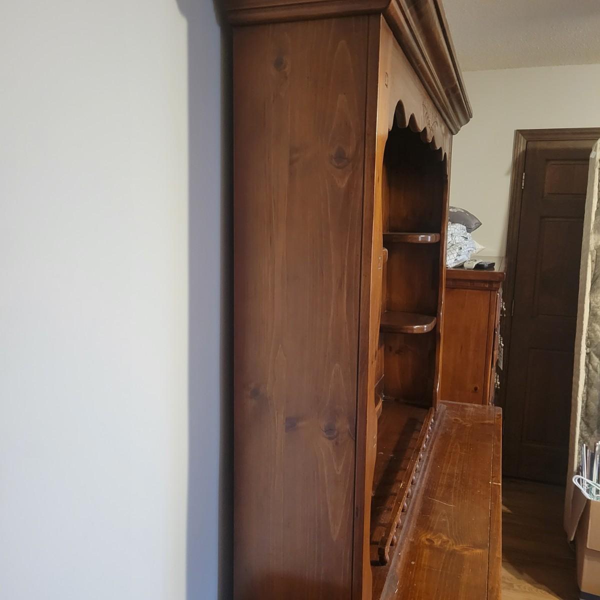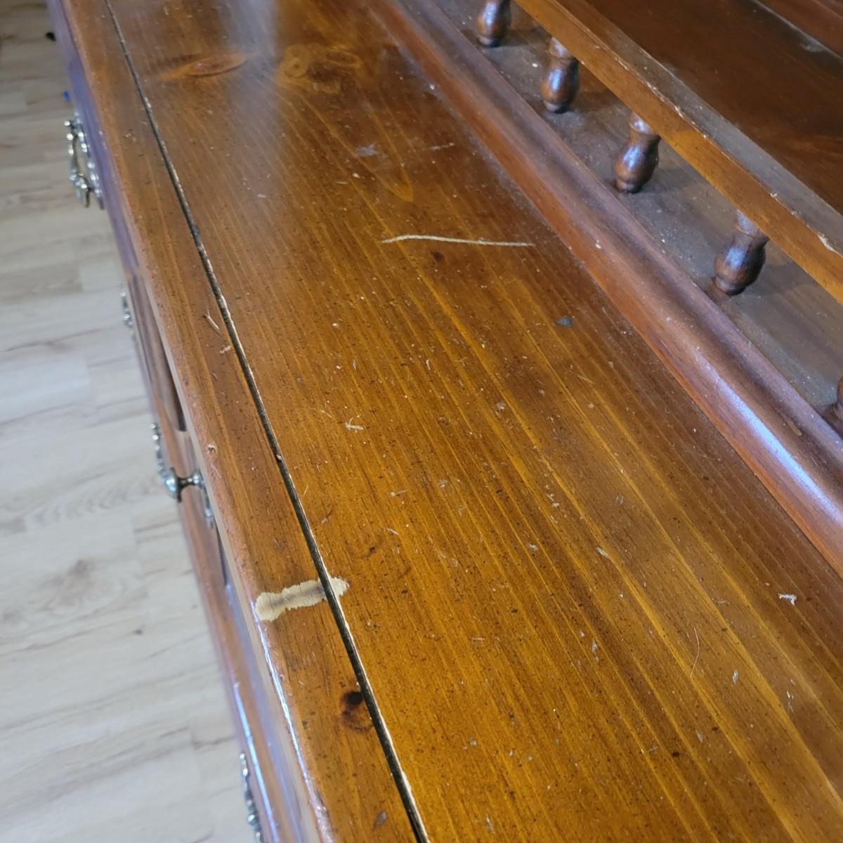 A Link-Tayor dresser with a detachable mirror. Dresser features seven drawers and a small cabinet, and has brass hardware. The mirror is able to be separated from the dresser with a flathead screw driver. Measures approximately 70" x 18" x 78"H. This piece has some scratches and blemishes, see photos for more detail. Local pickup only. Winning bidder must bring assistance to help move and load this item due to its weight and/or size.