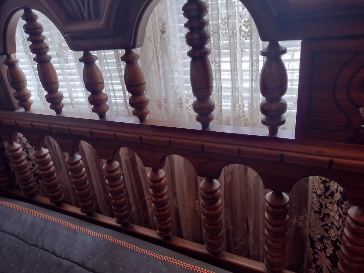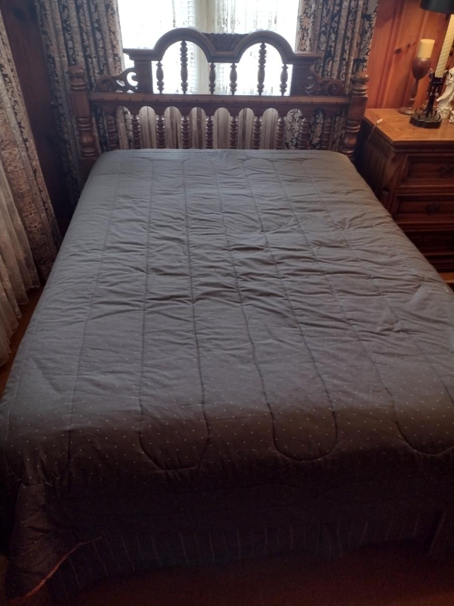 Link-Taylor Turned Wood Spindle Full Size Headboard Bed Frame and Mattress Set