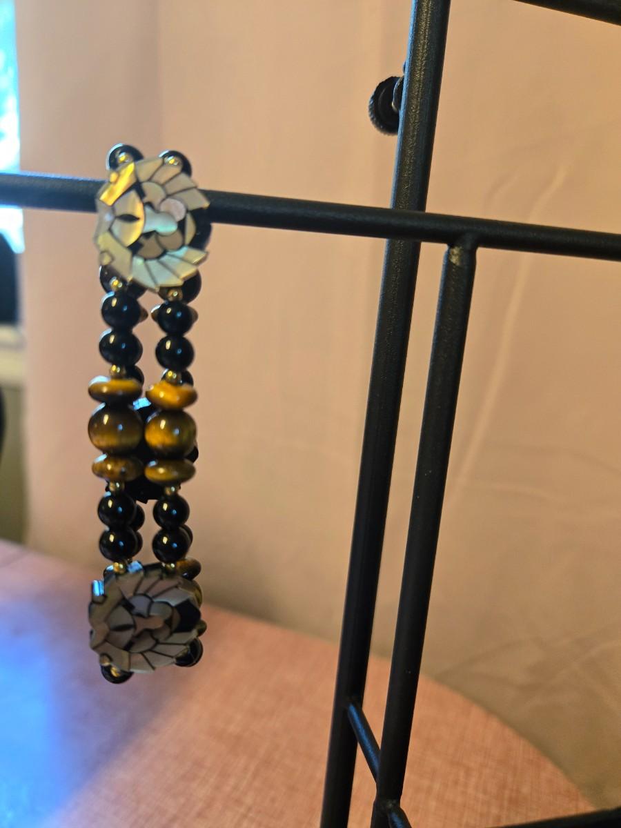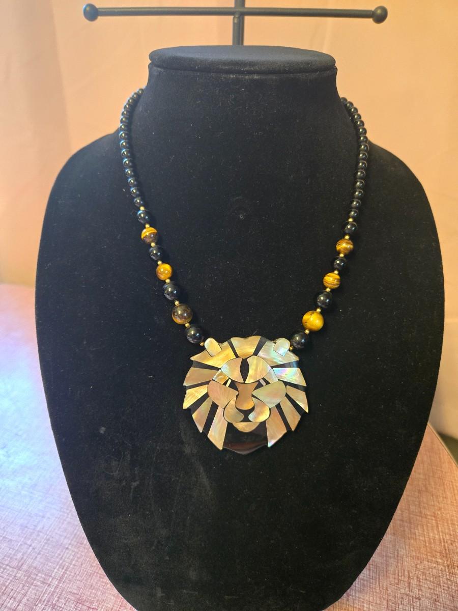 Beaded shell look Lion necklace & bracelet set
