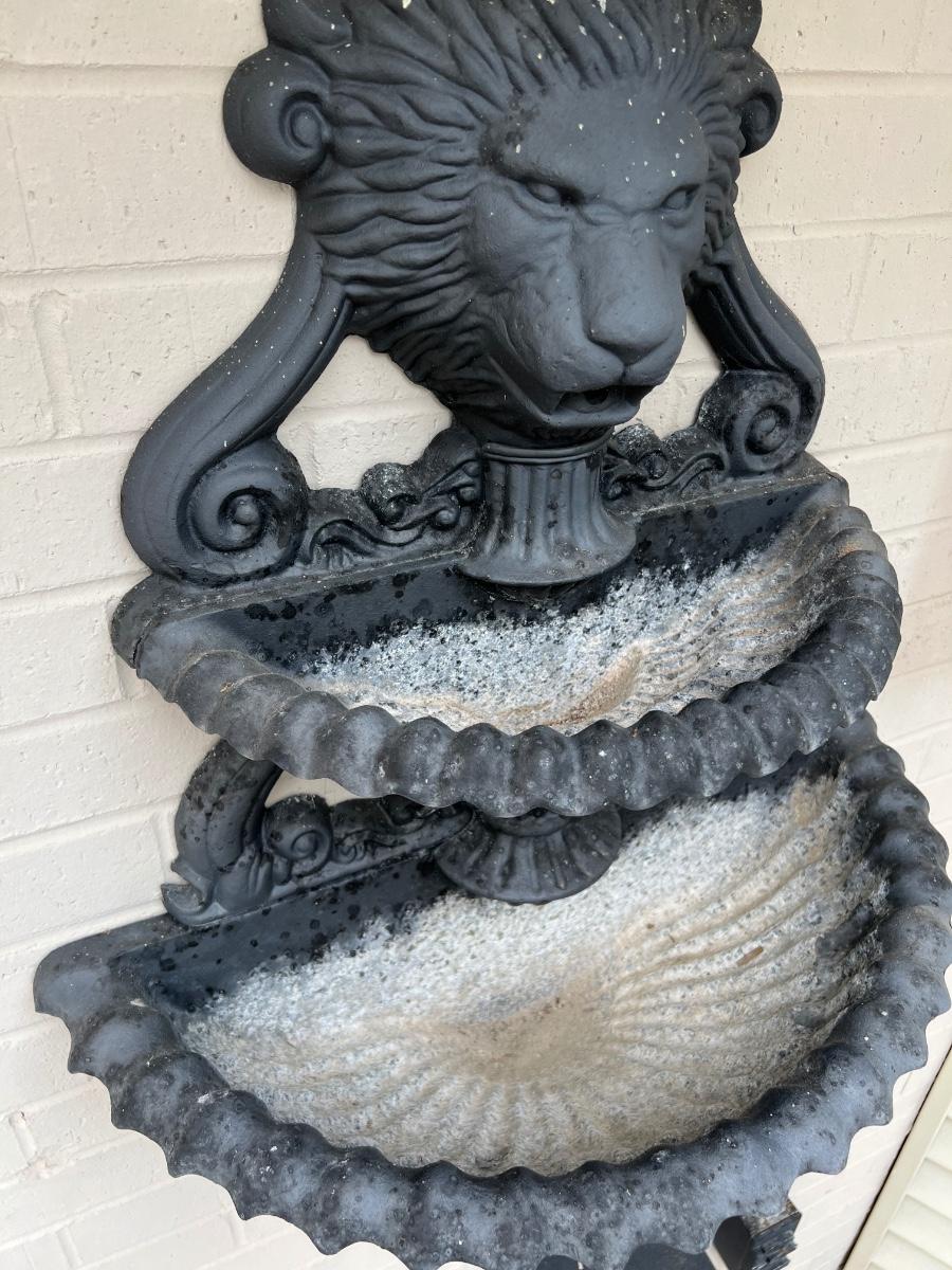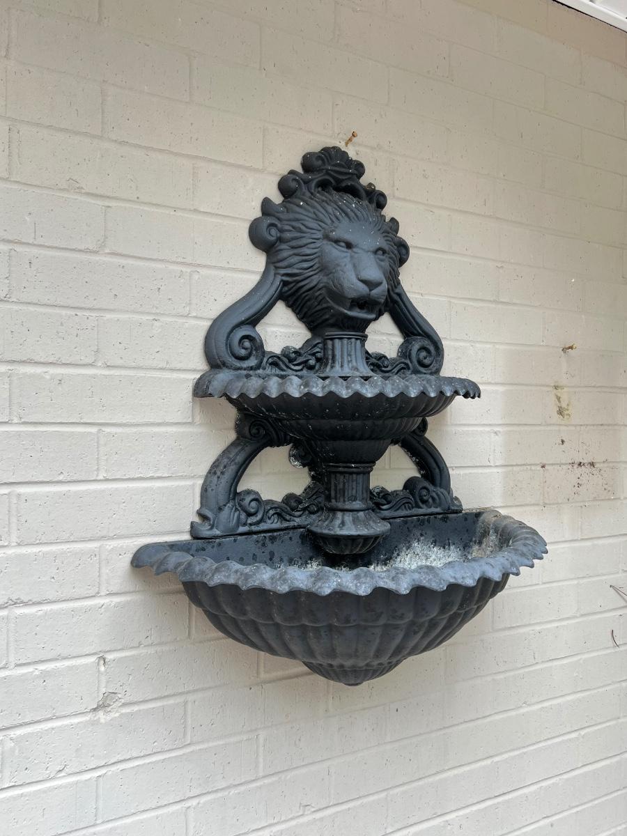 Is currently being used as wall decor outside, not a fountain ~ Does not have a water pump ~ 30” H x 25” W x 11” D