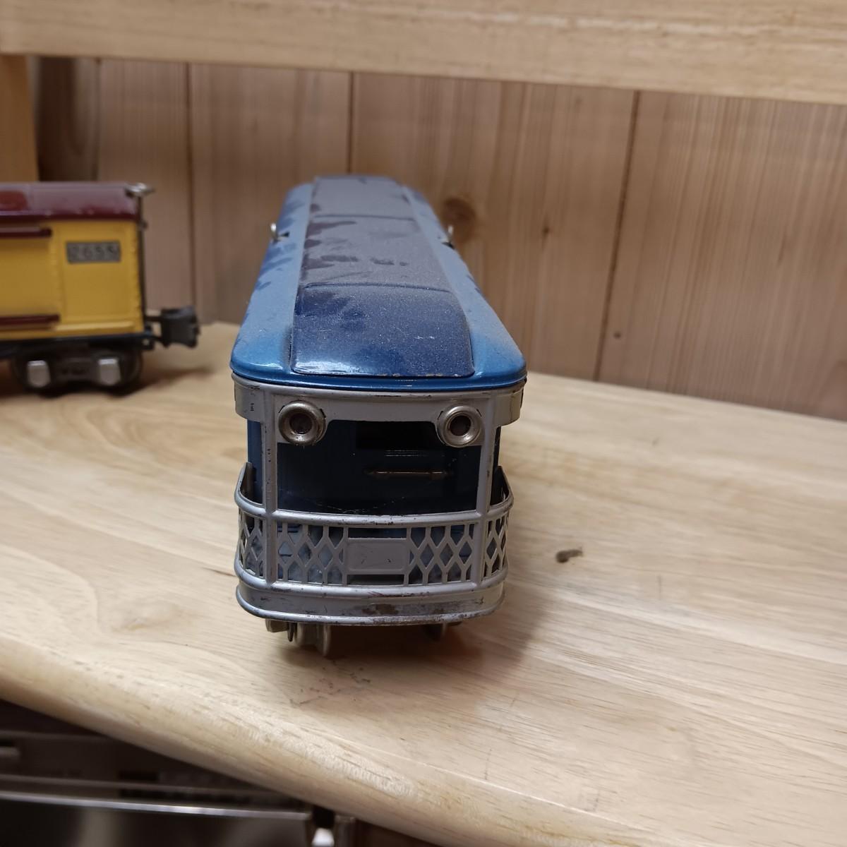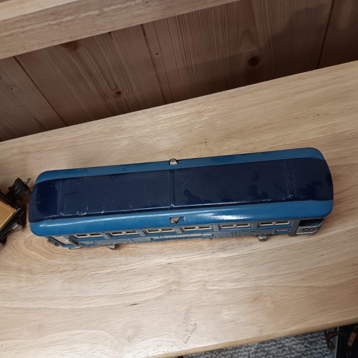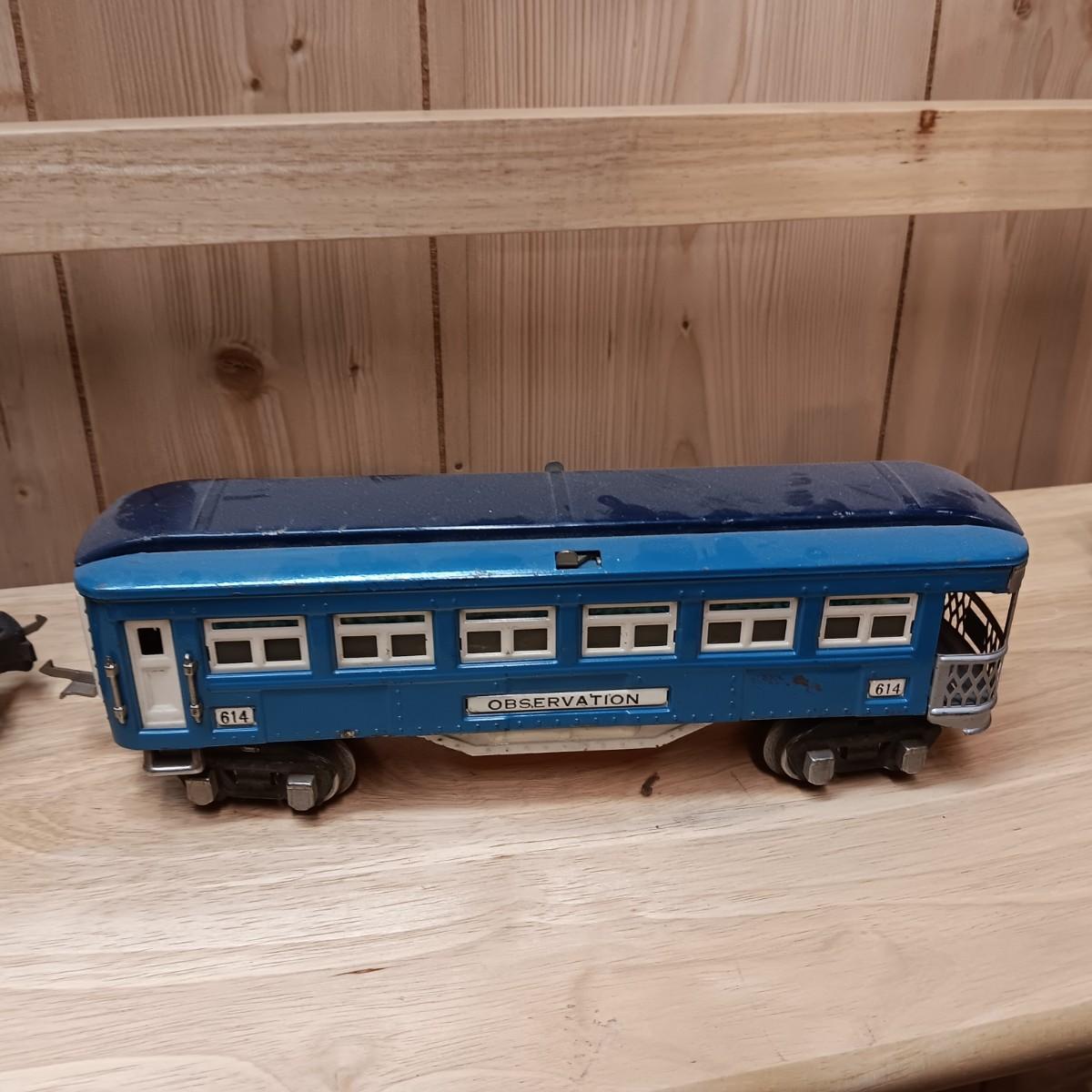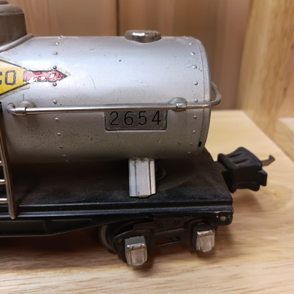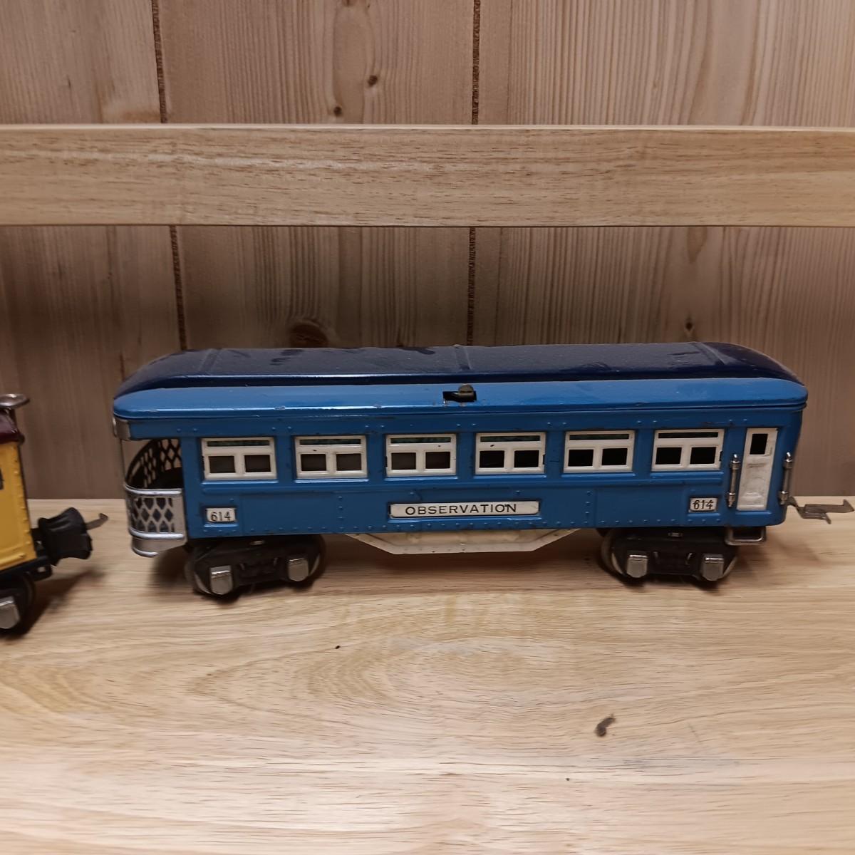 LIONEL BLUE COMET PASSENGER TRAIN, SUNOCO TANK CAR, A BOXCAR, RAILROAD LIGHT AND NO CROSSING