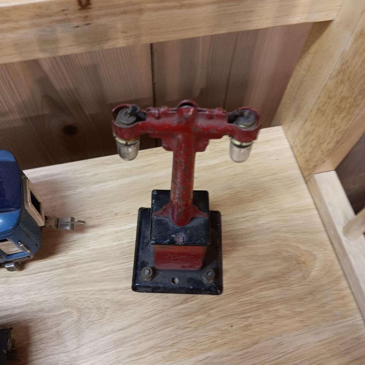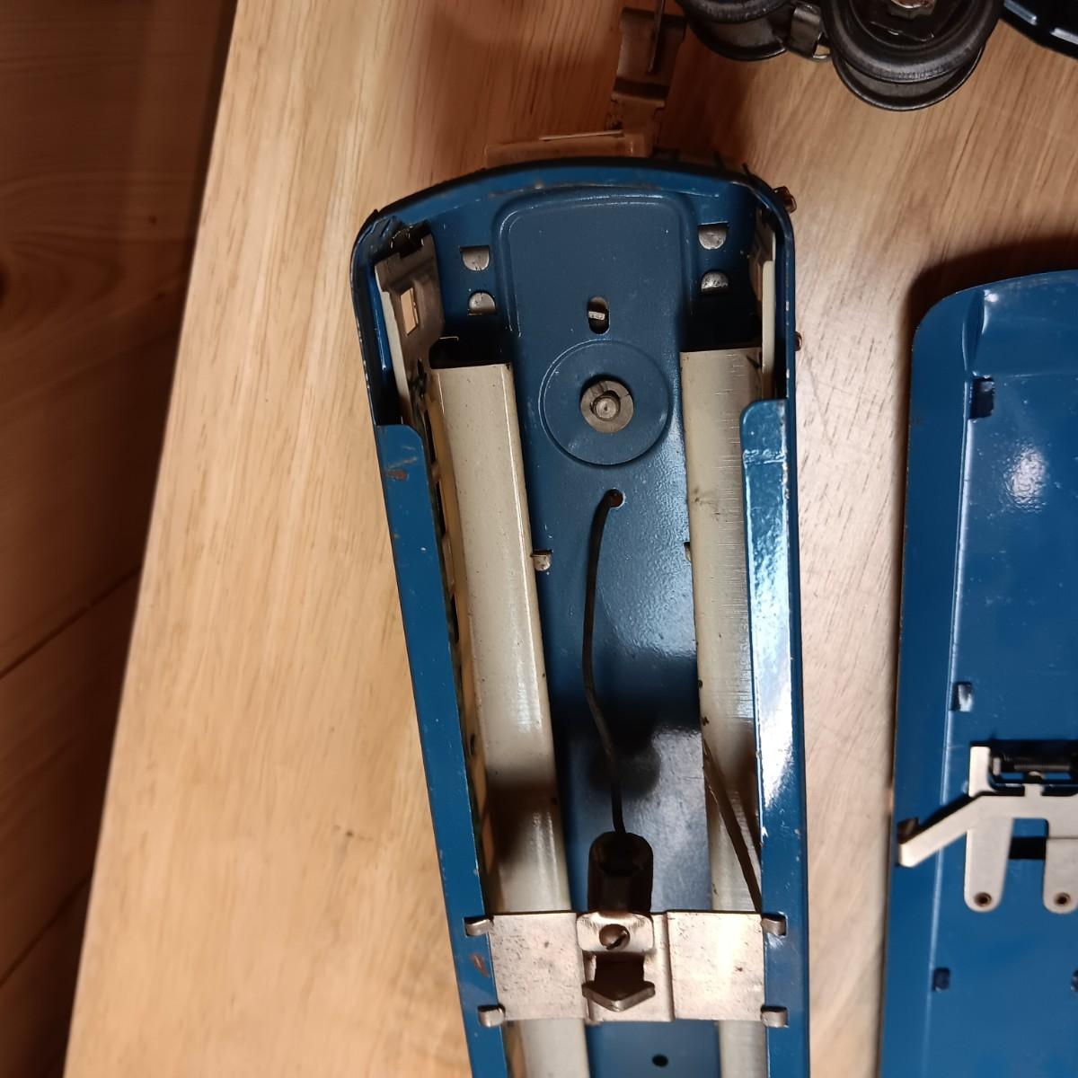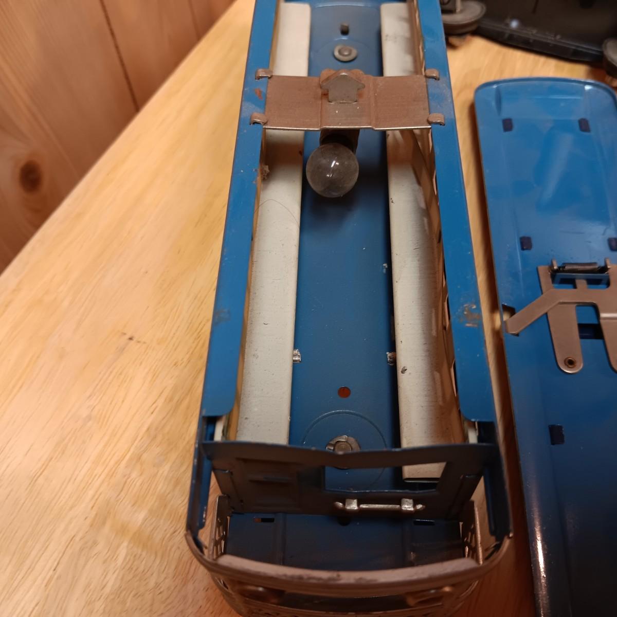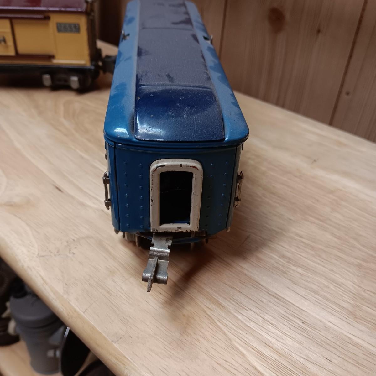 LIONEL BLUE COMET PASSENGER TRAIN, SUNOCO TANK CAR, A BOXCAR, RAILROAD LIGHT AND NO CROSSING