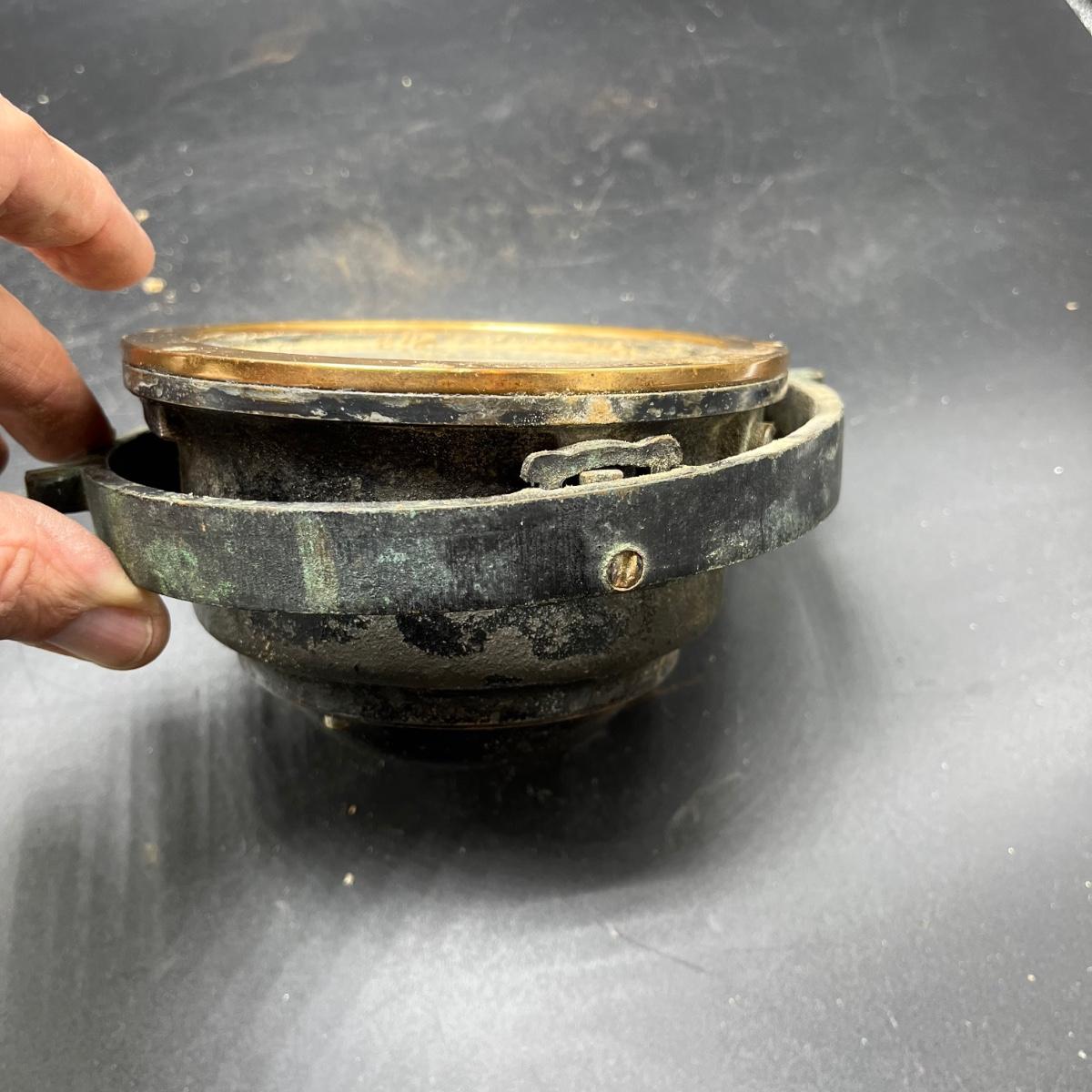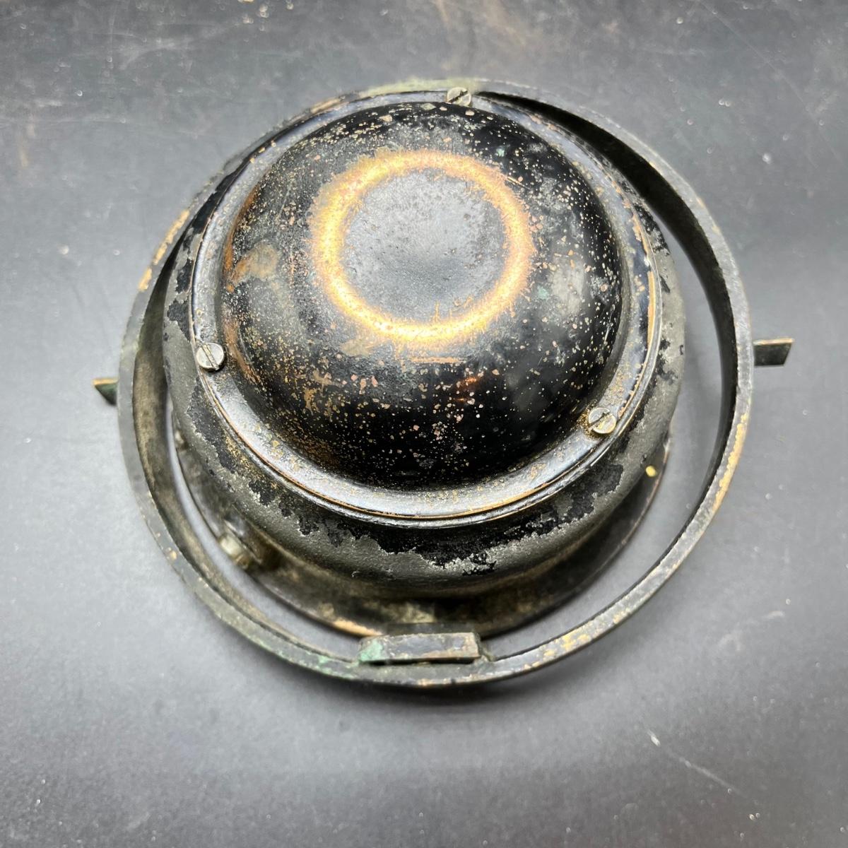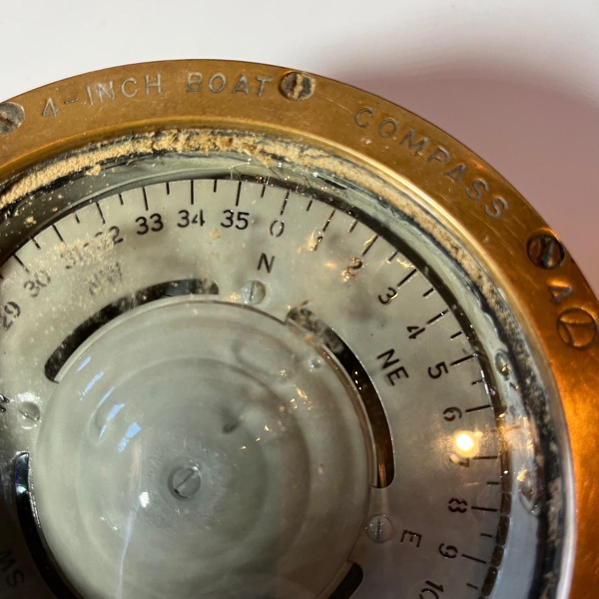 Lot includes a Lionel Co. 4 inch boat compass marked 1942. Compass is heavy metal with a copper and glass top. Compass measures 6”D x 3.5” tall.