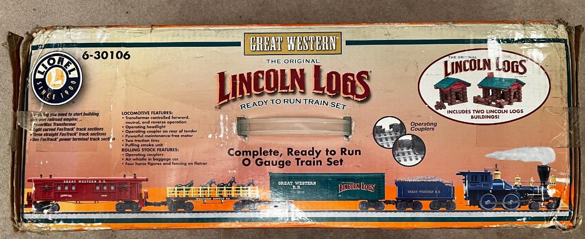 Lionel Great Western Lincoln Logs Train Set 0 Gauge 60” Oval Track