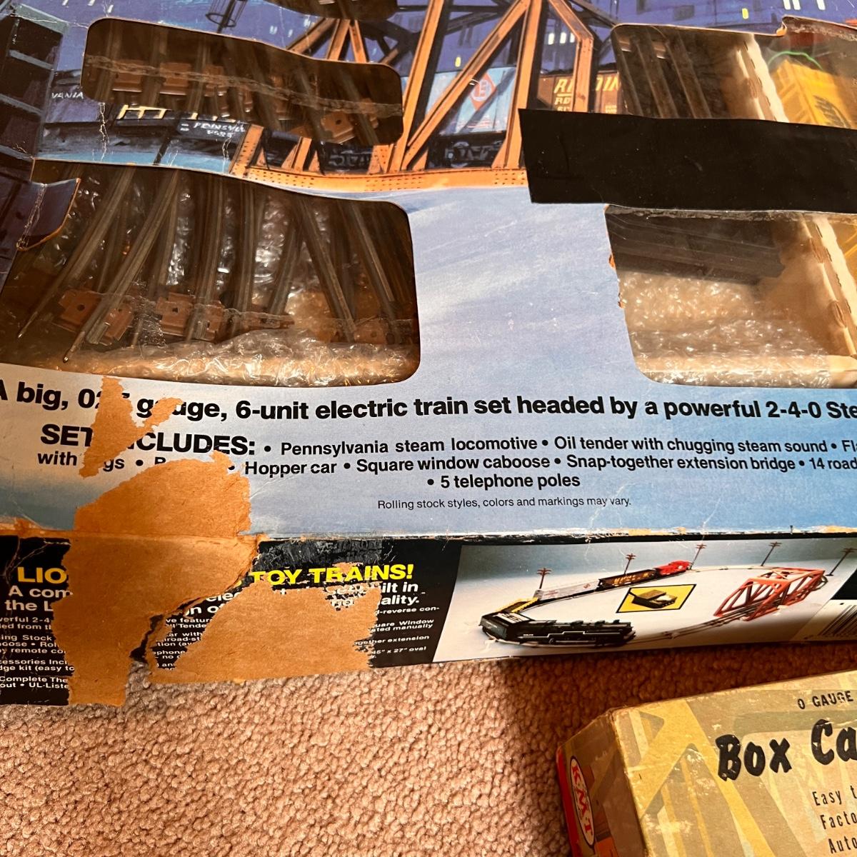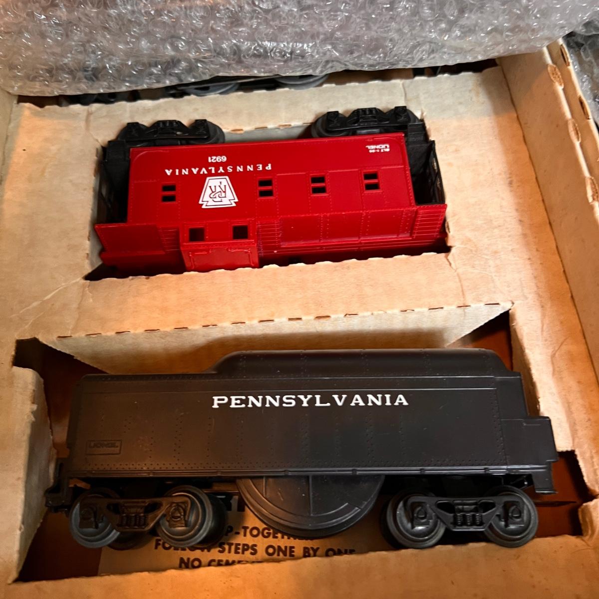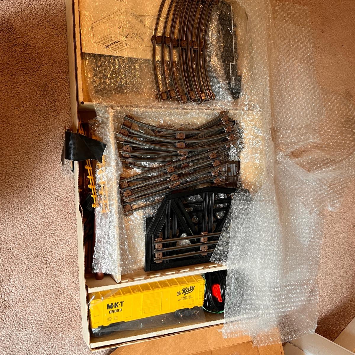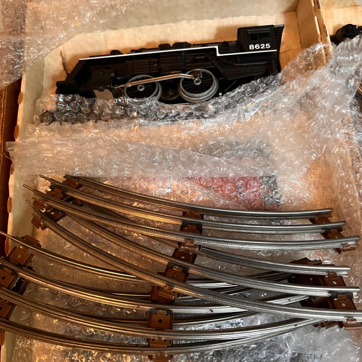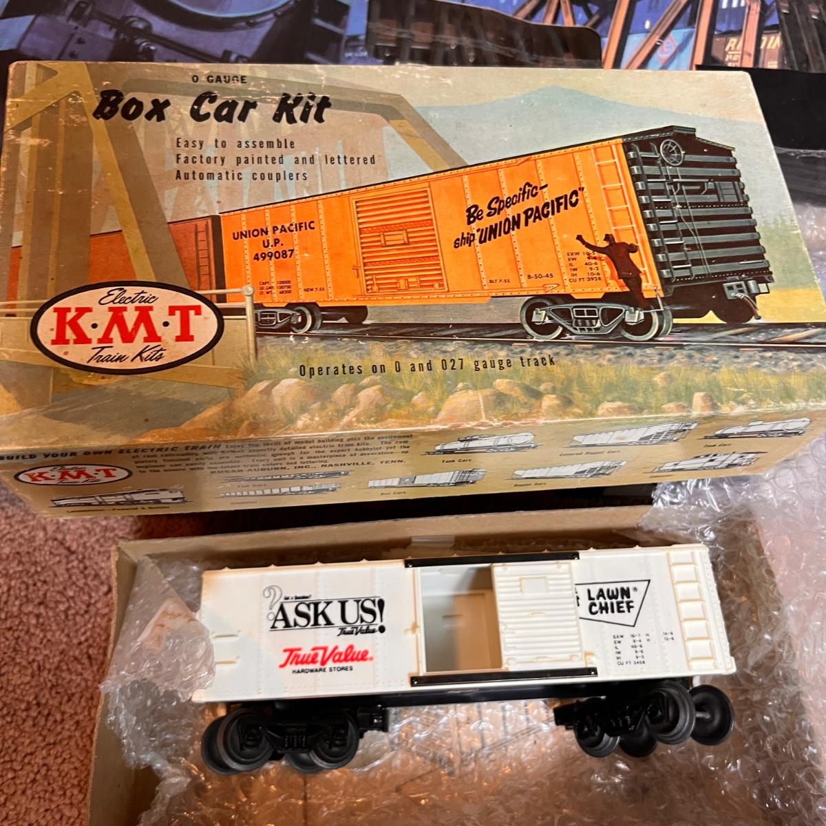 Lionel Cannonball Express train set - box has lots of wear but pieces were carefully stored with packing bubble wrap. Looks to be complete but see all pics for details. Parts were not counted. True Value Lionel car is stored in a KMT box, not the original box.