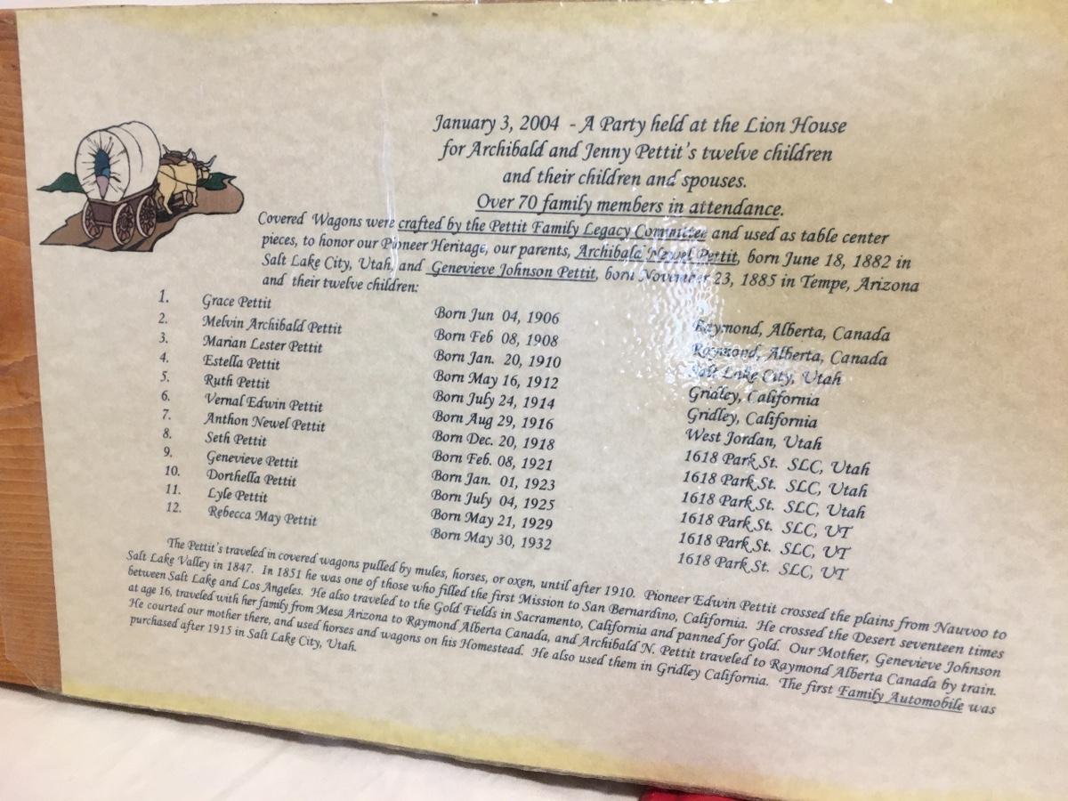LionHouse  of Utah Centerpiece for  Archibald Newel Pettit
