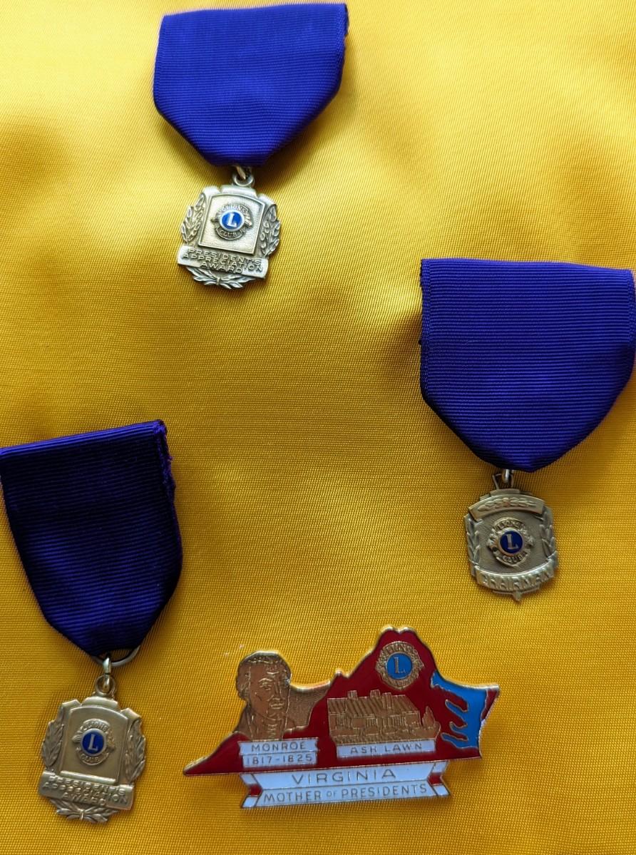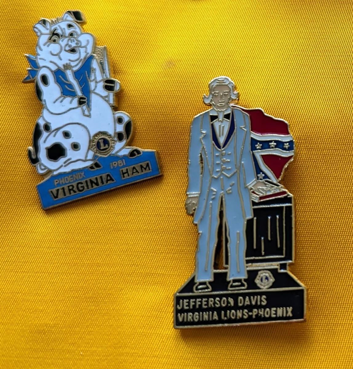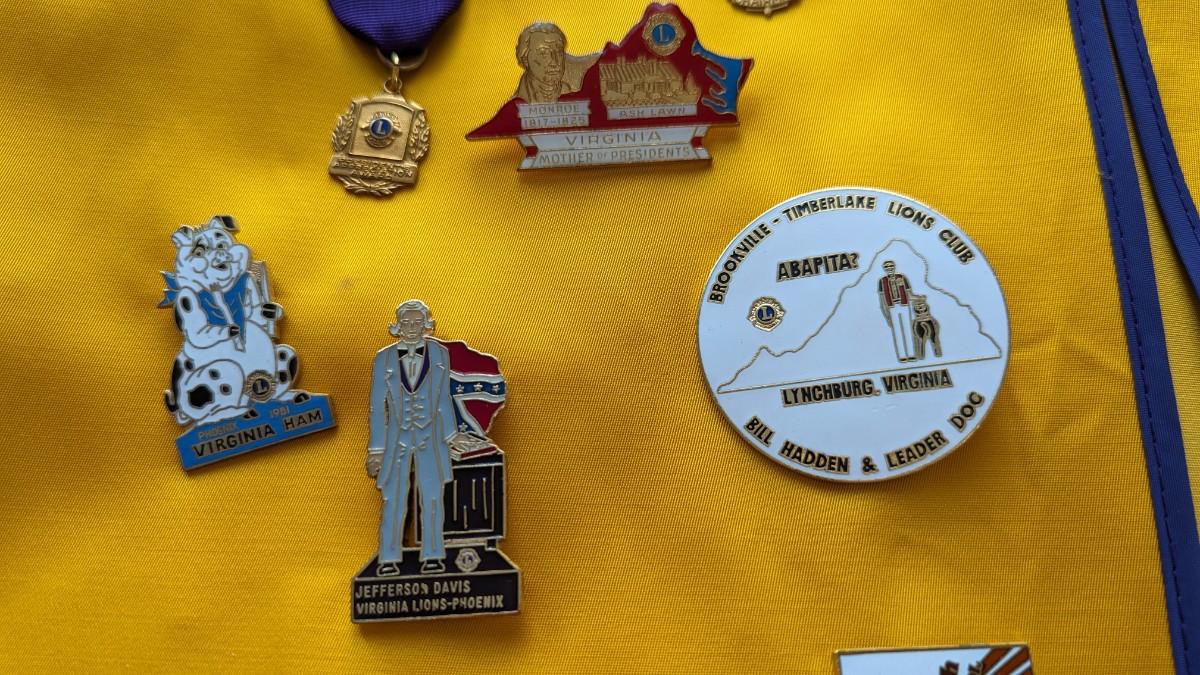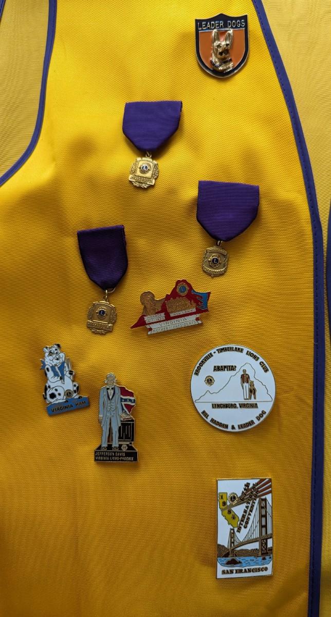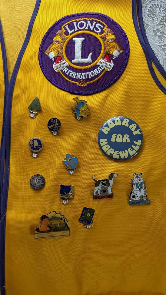 Lions Club International vest with Pins Attendance Virginia Jefferson Davis 1970's 1980's