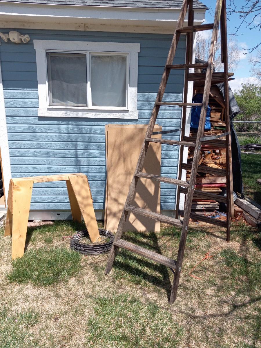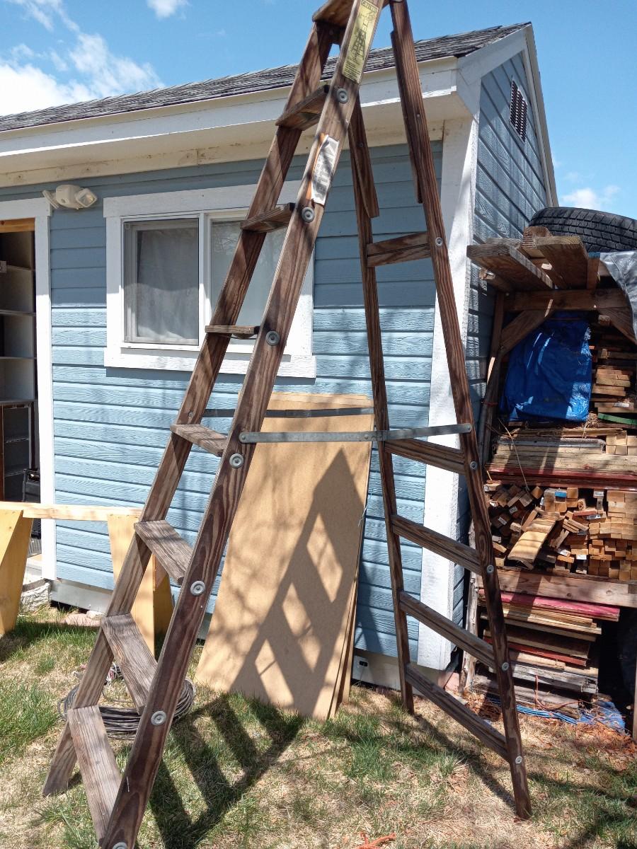 WOODEN LADDER IS 8 FT TALL