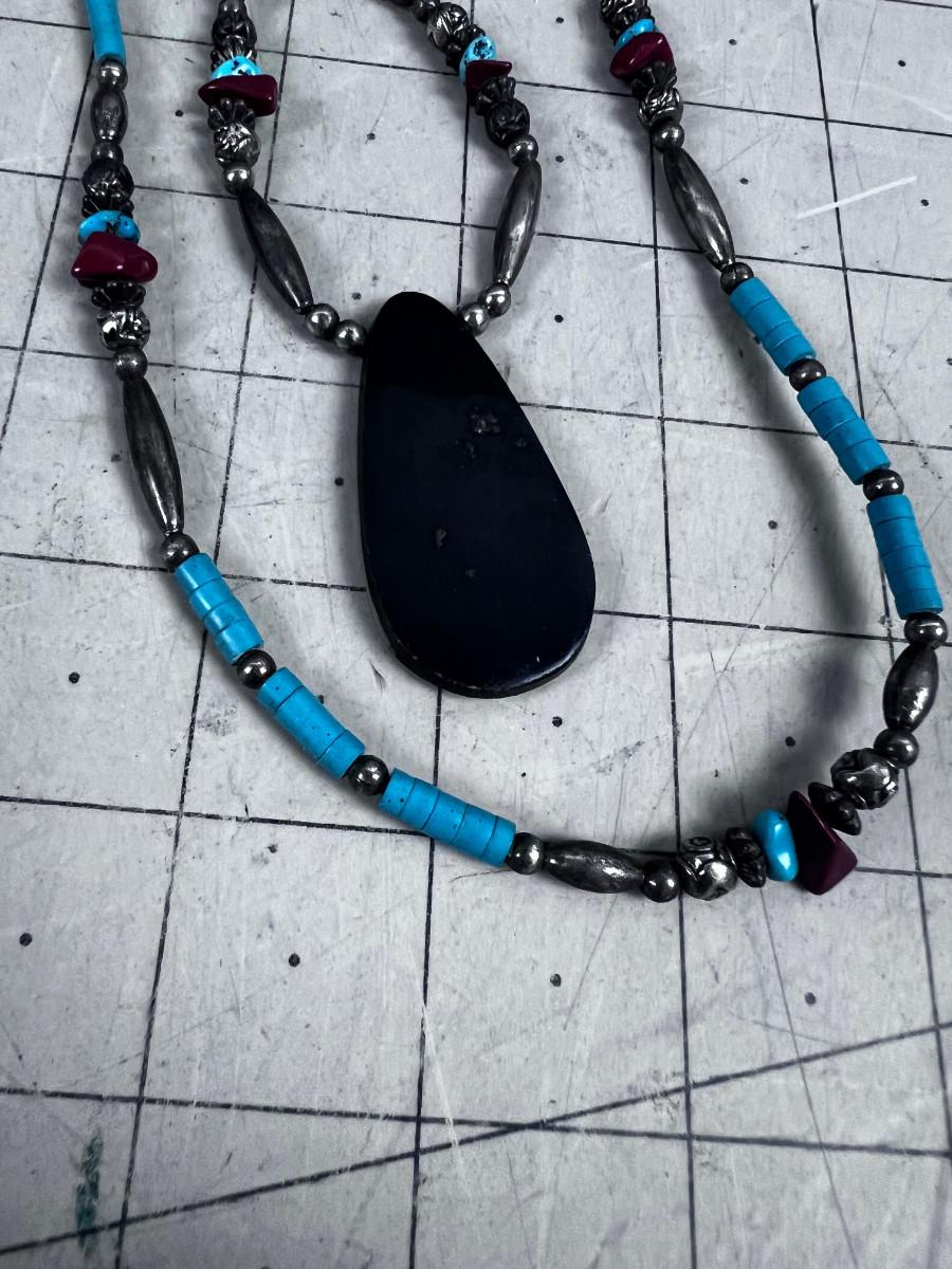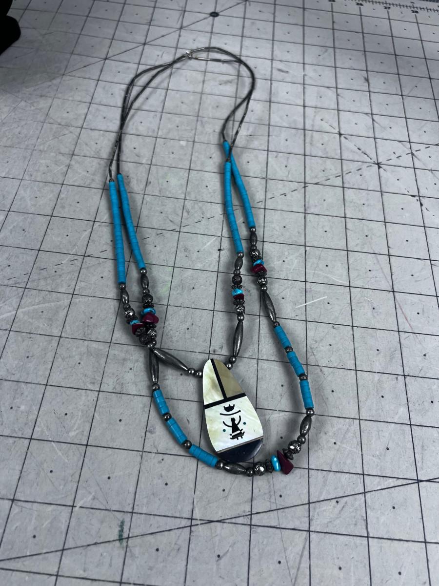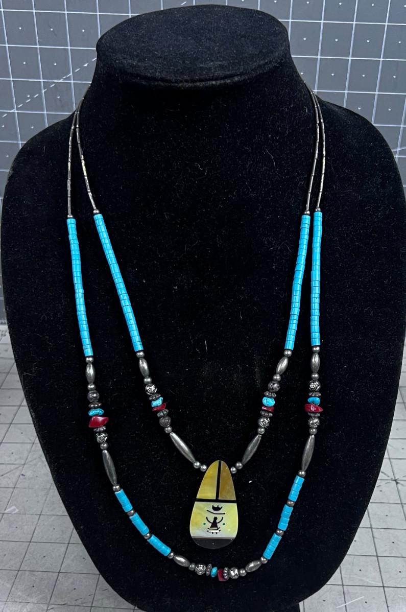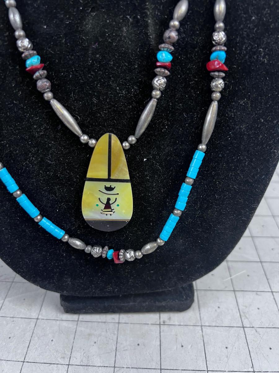 Liquid Silver and Cut Turquoise Beads Plus Inlay Pendant