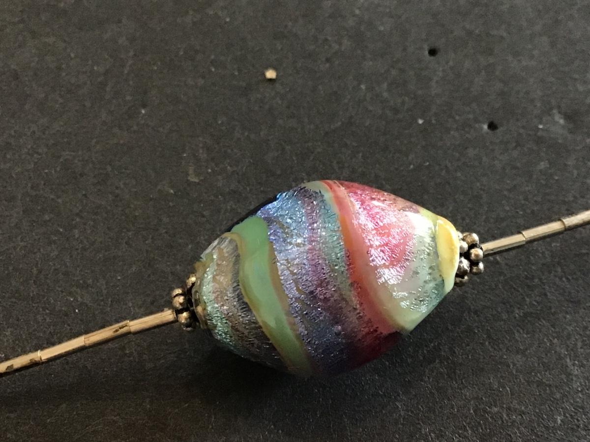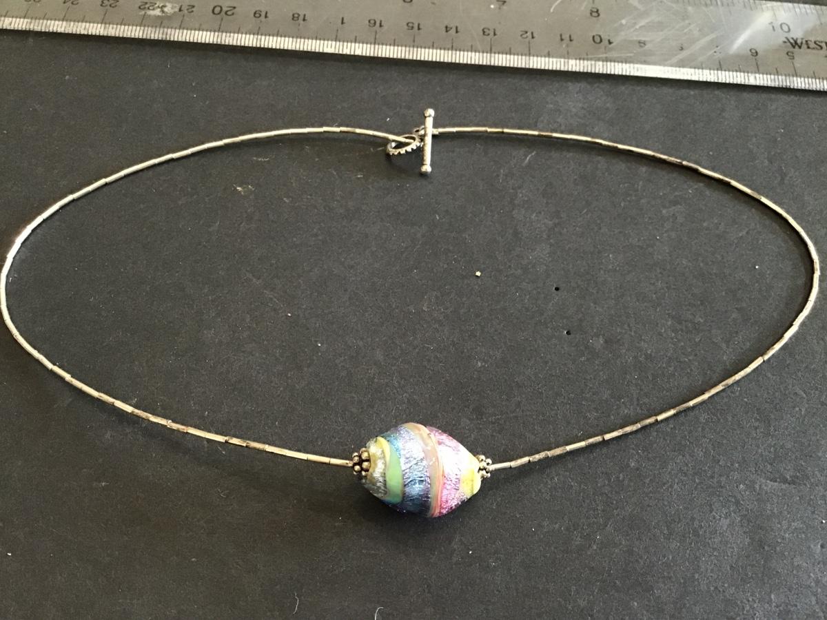 Liquid Silver Tube Bead With large Art Glass Pendant