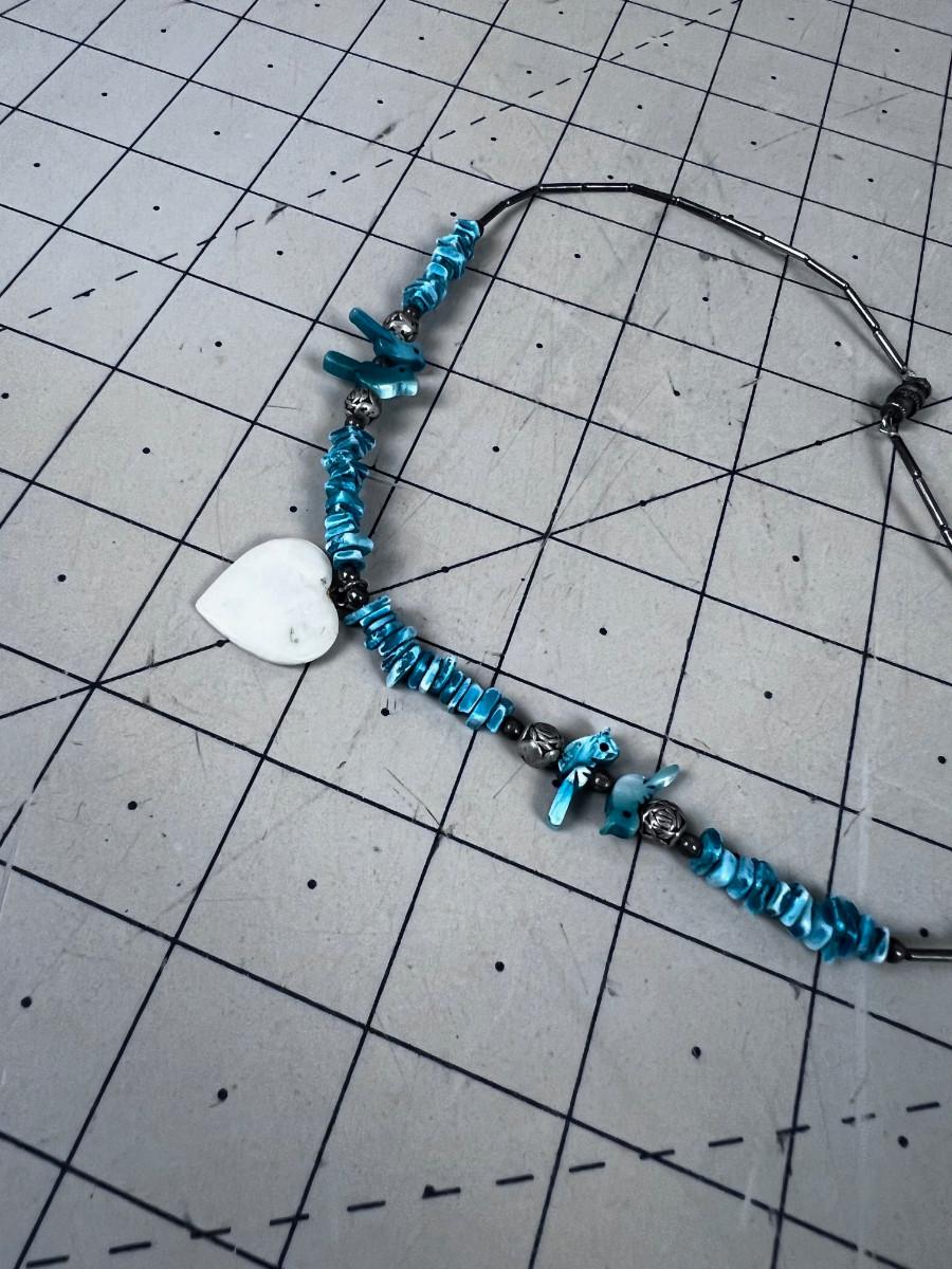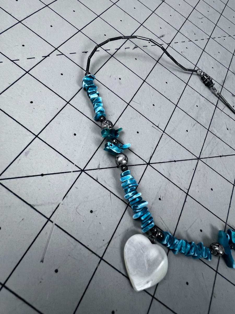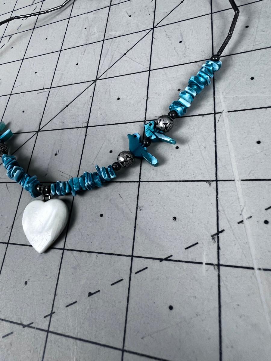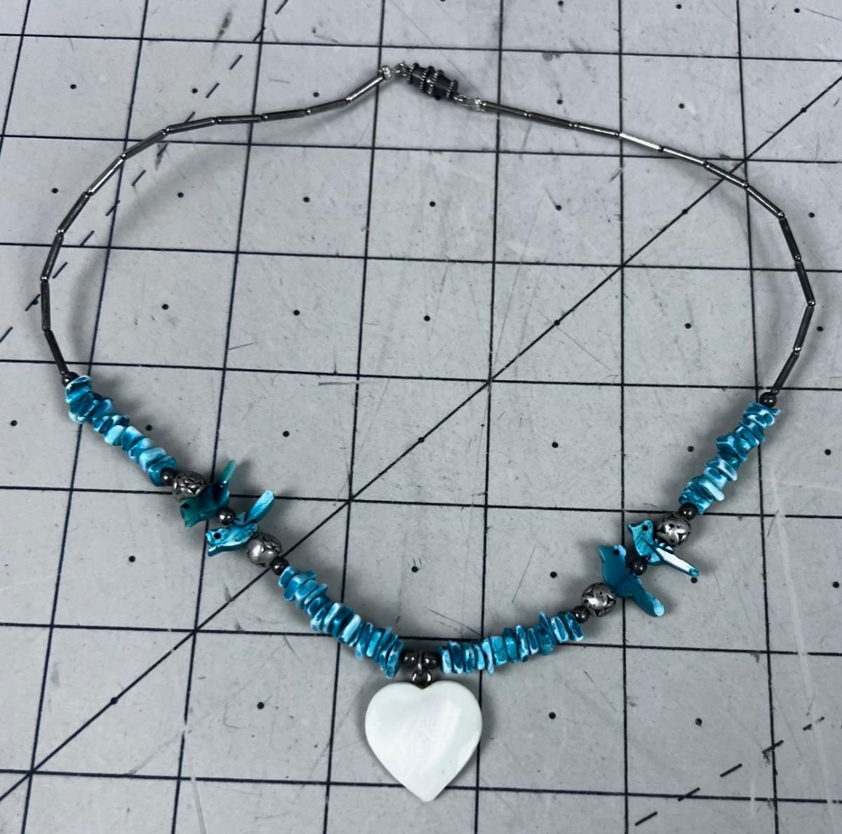 Liquid Silver with Turquoise Carved Birds and a White Heart