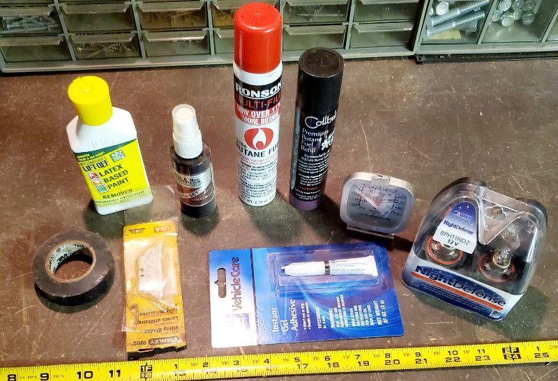 Most liquids are at least 1/ 2 full, head light replacement bulbs are new in pkg