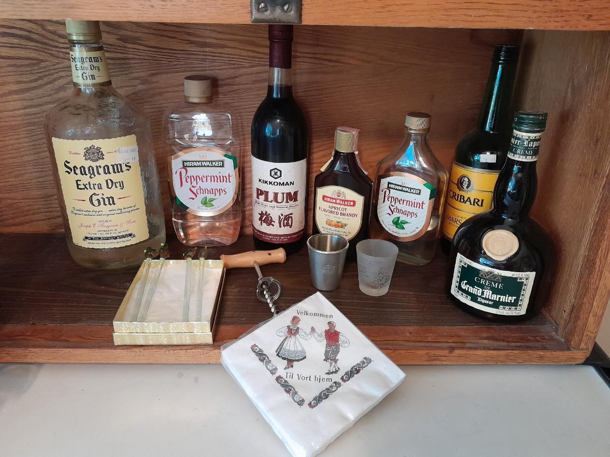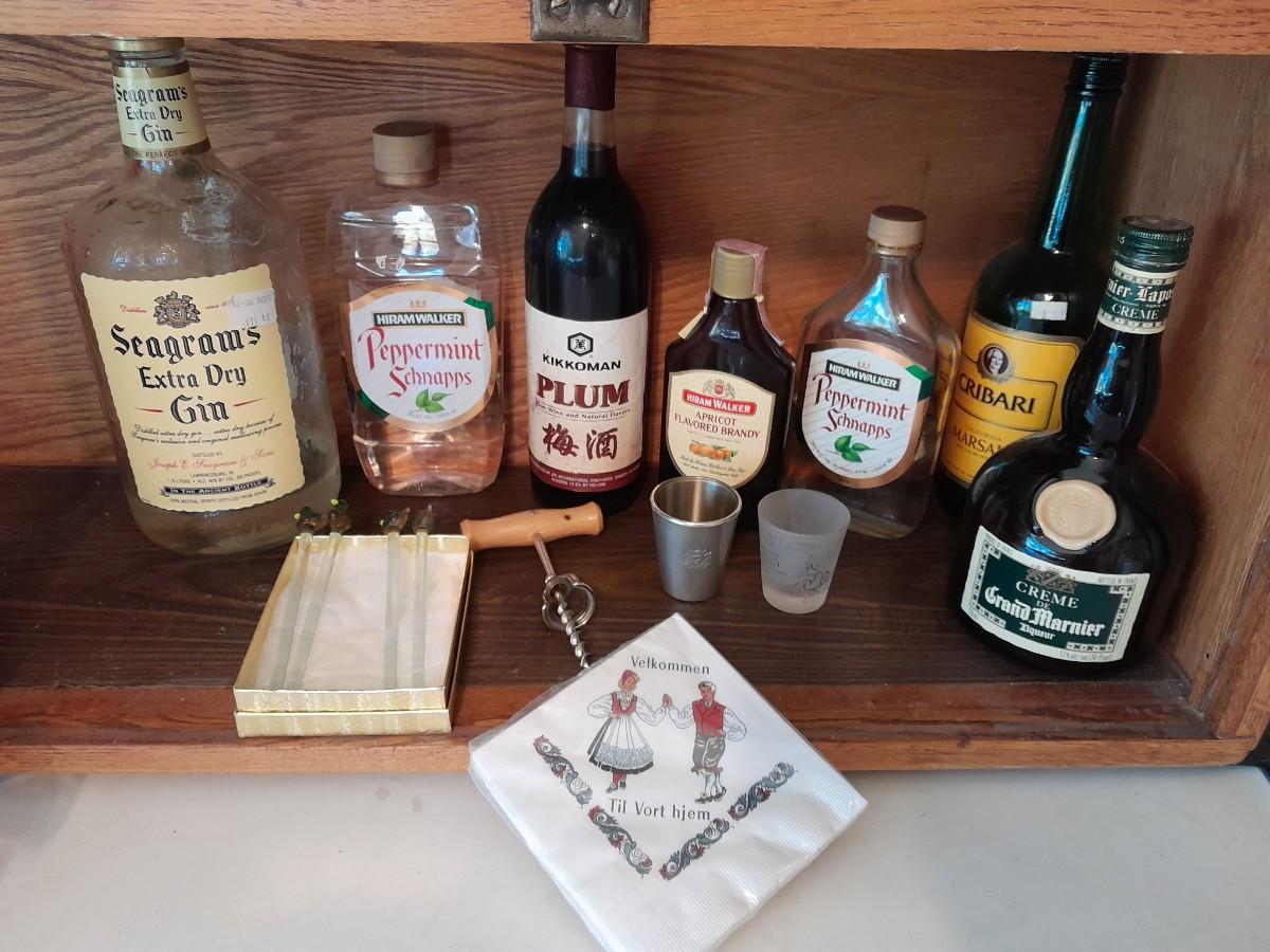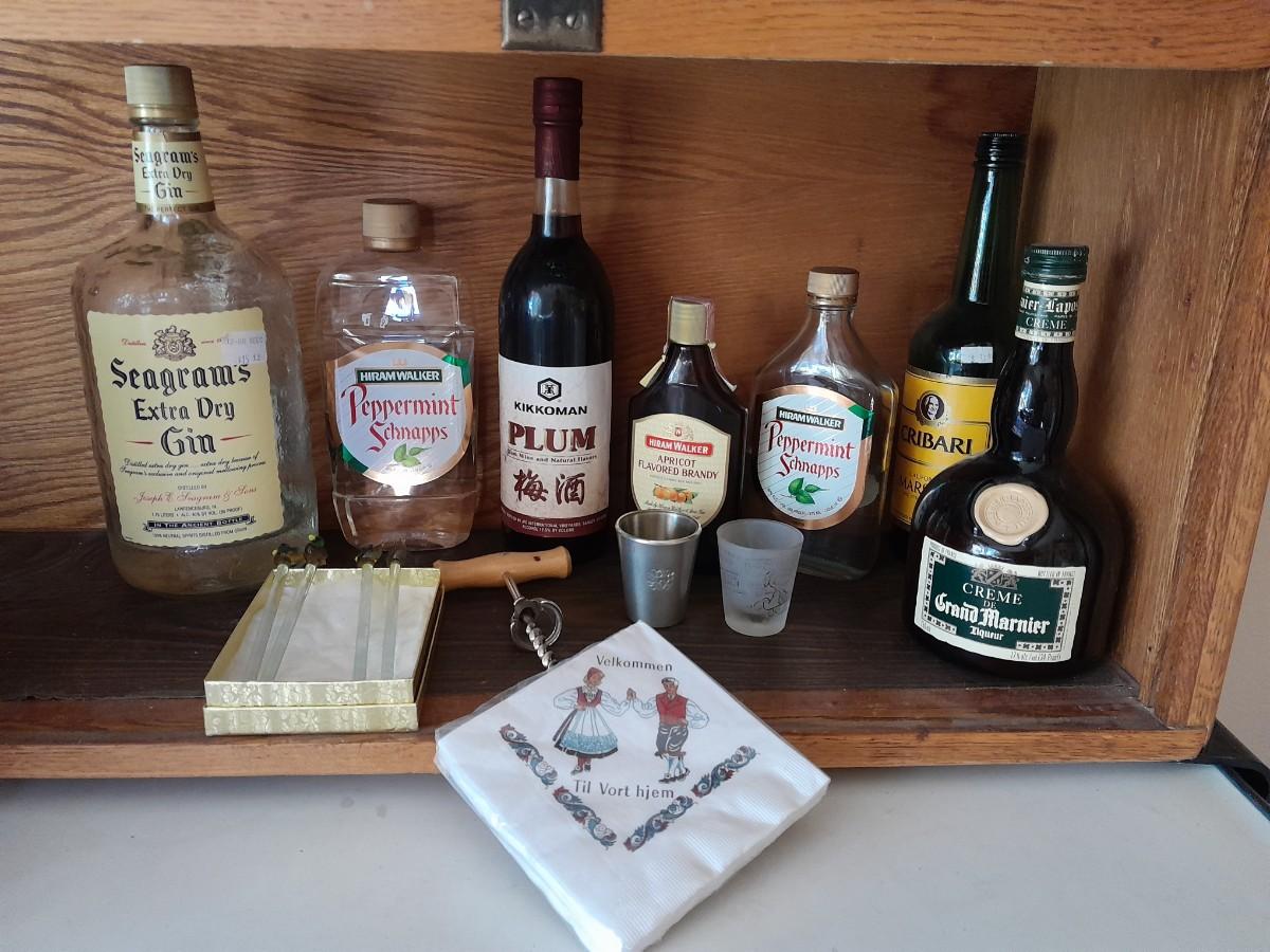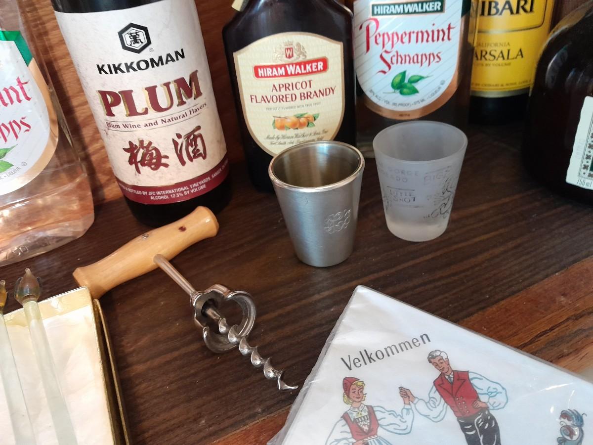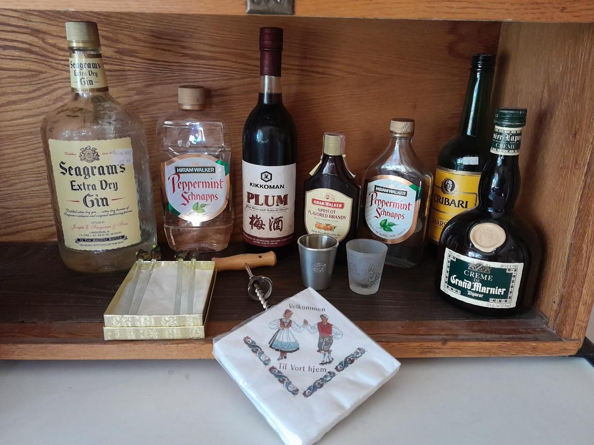 SPIRITS WITH SOME PARTIALLY FULL AND ASSORTMENT OF BARWARE