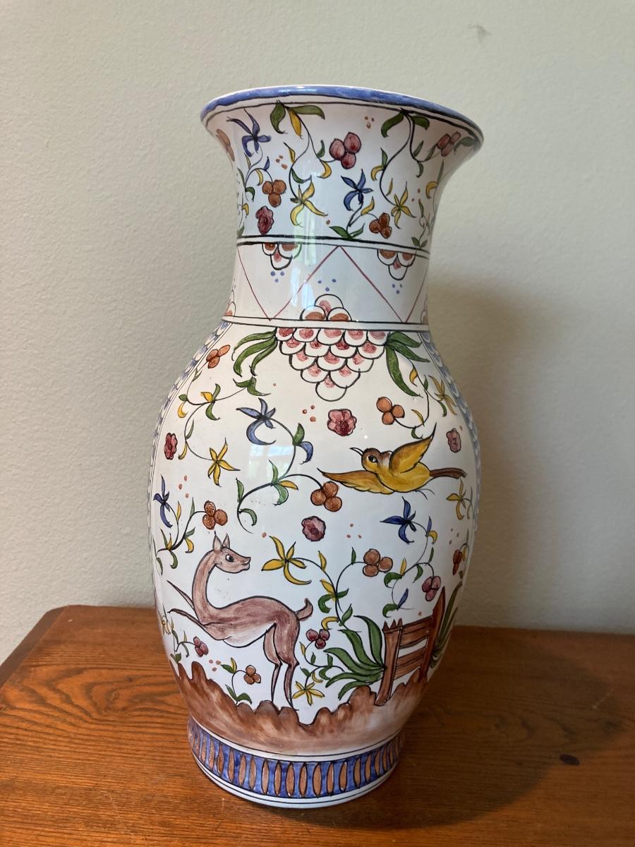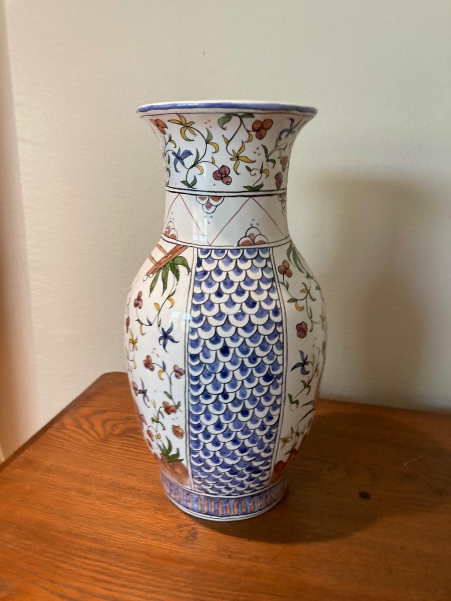 Lis ceramica hand-painted floral Vase 13 1/2” h X 7” diameter at widest point Araruma, Brasil excellent condition