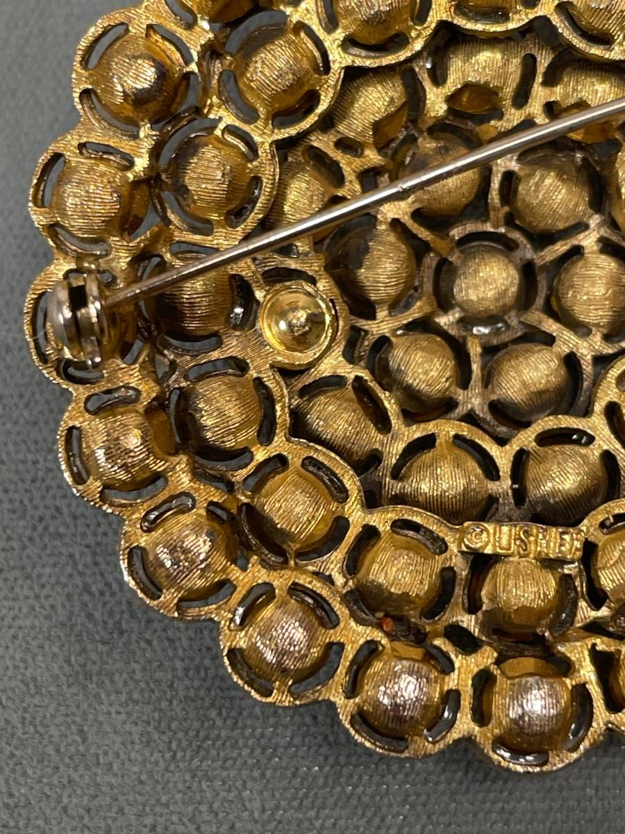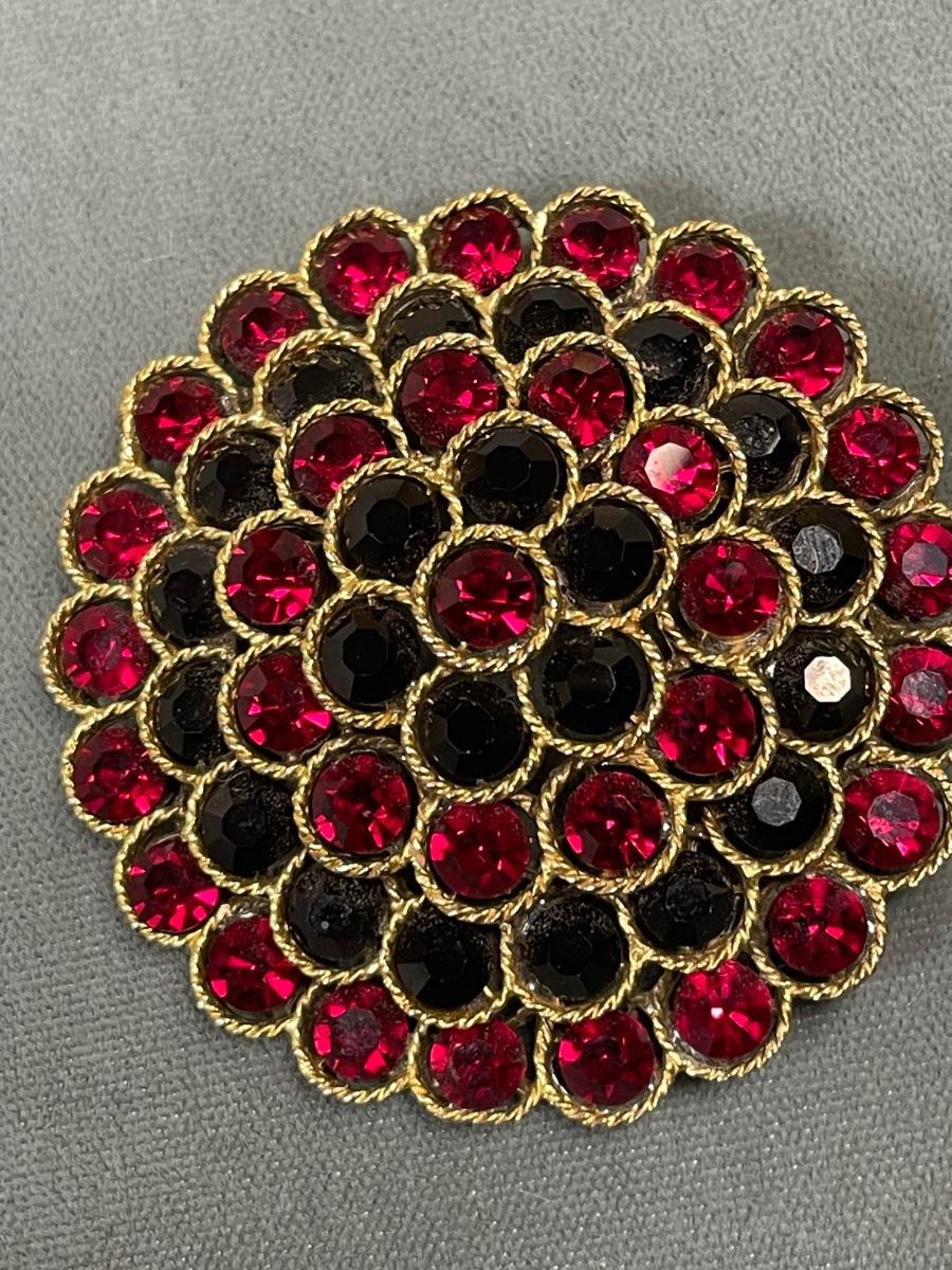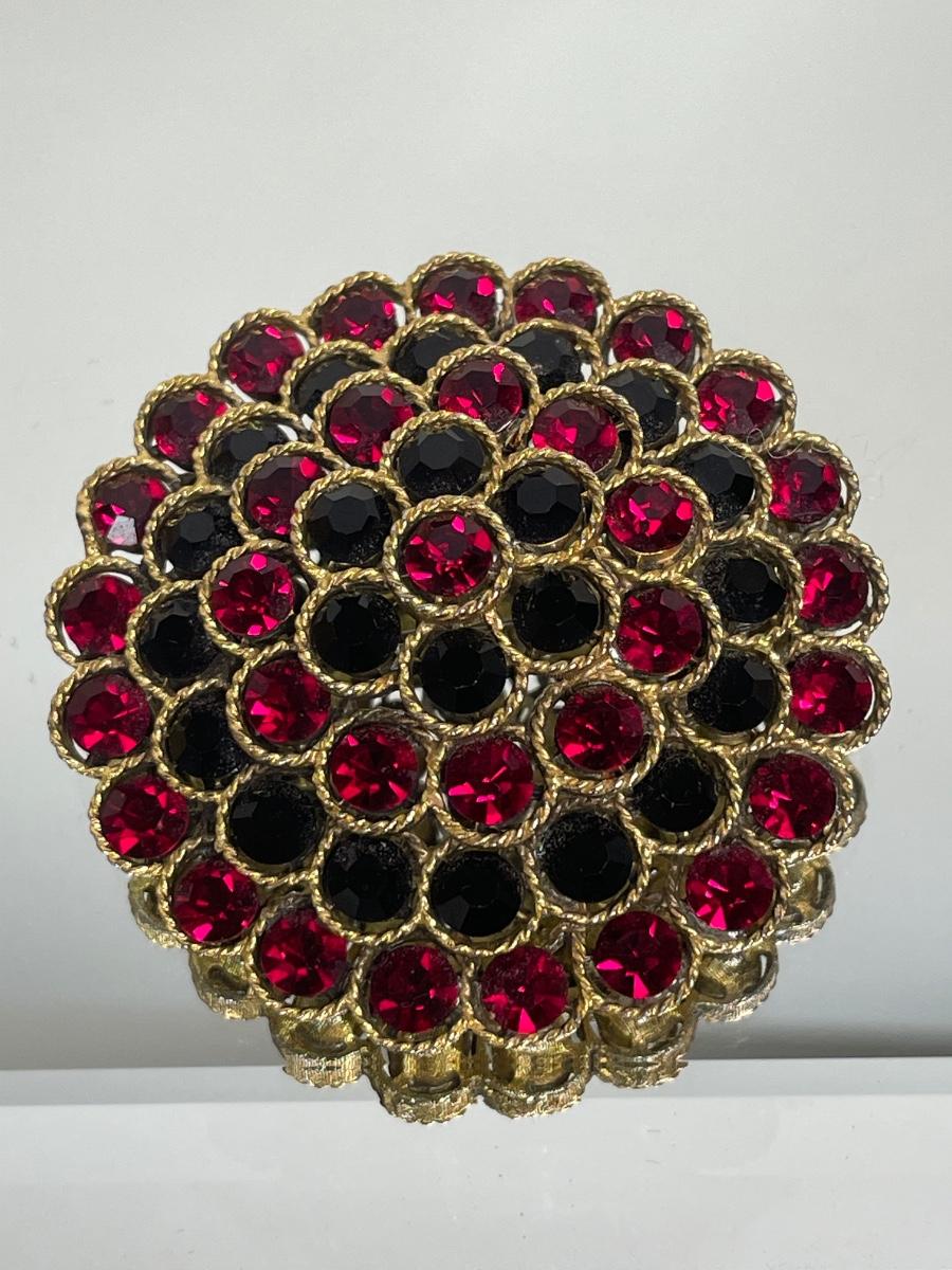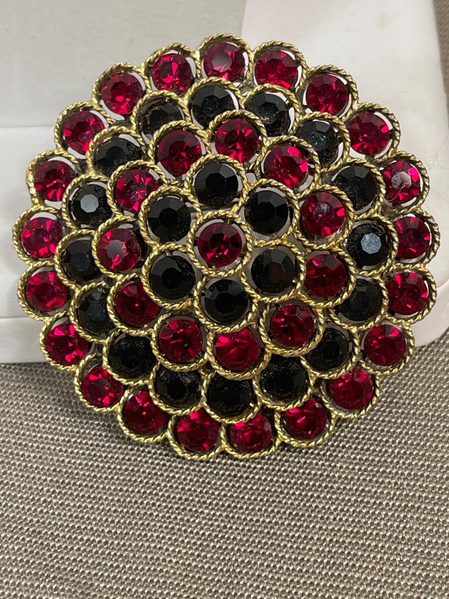 Lisner red and black rhinestone brooch
