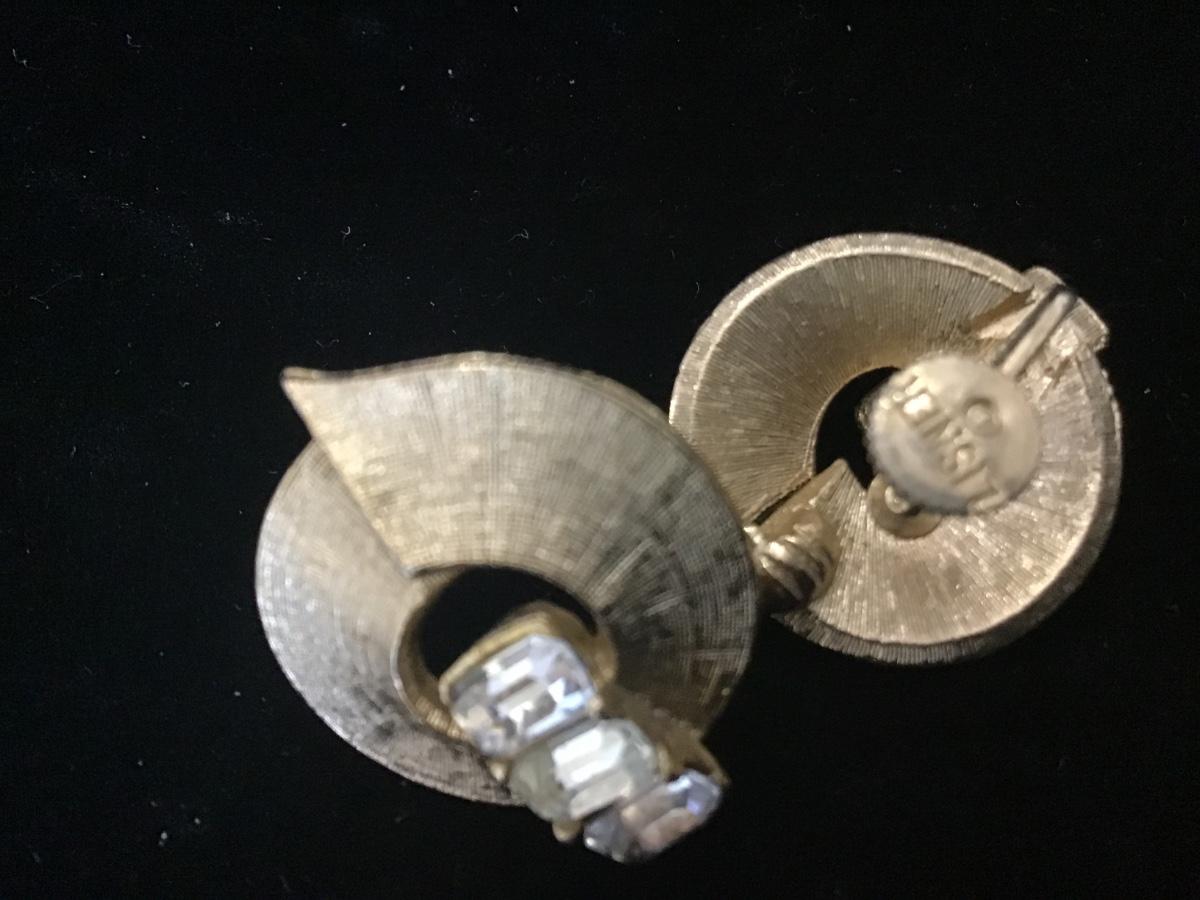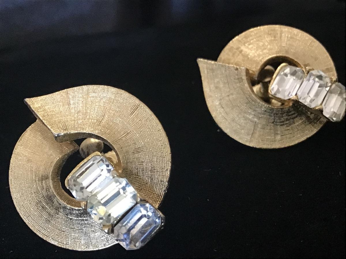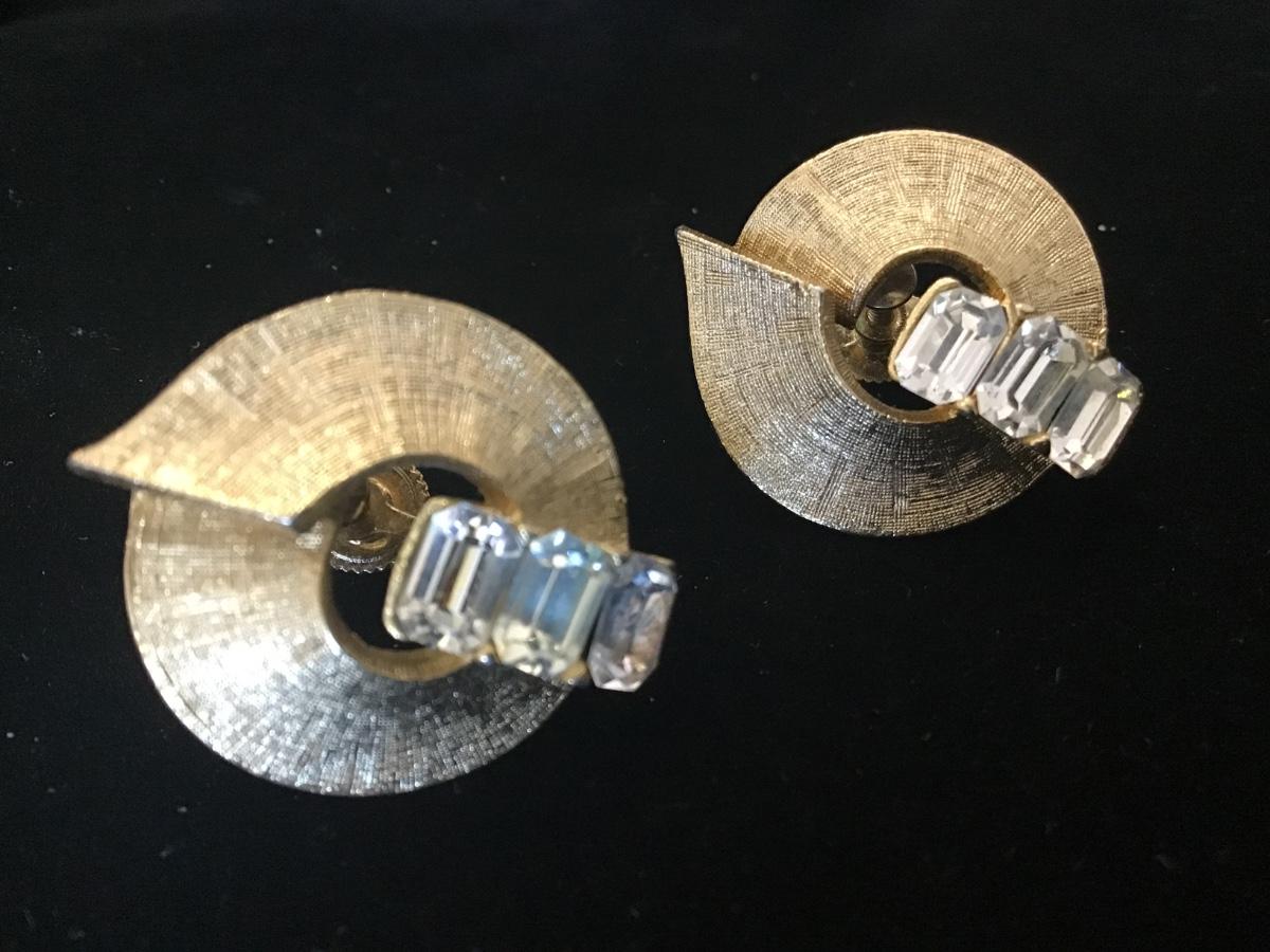 Lisner Rhinestone Earrings Brushed Gold Vintage Great Condition
