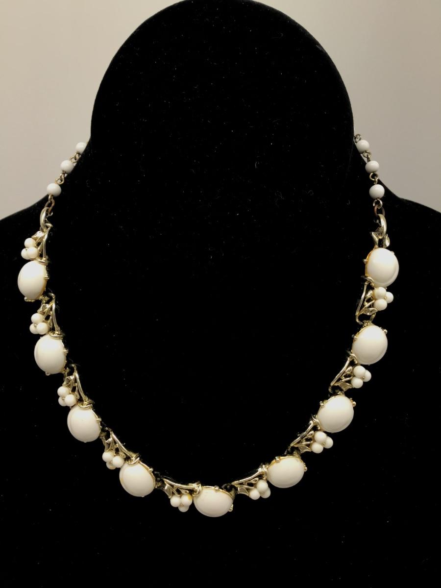 Lisner Vintage White Milk Glass Necklace