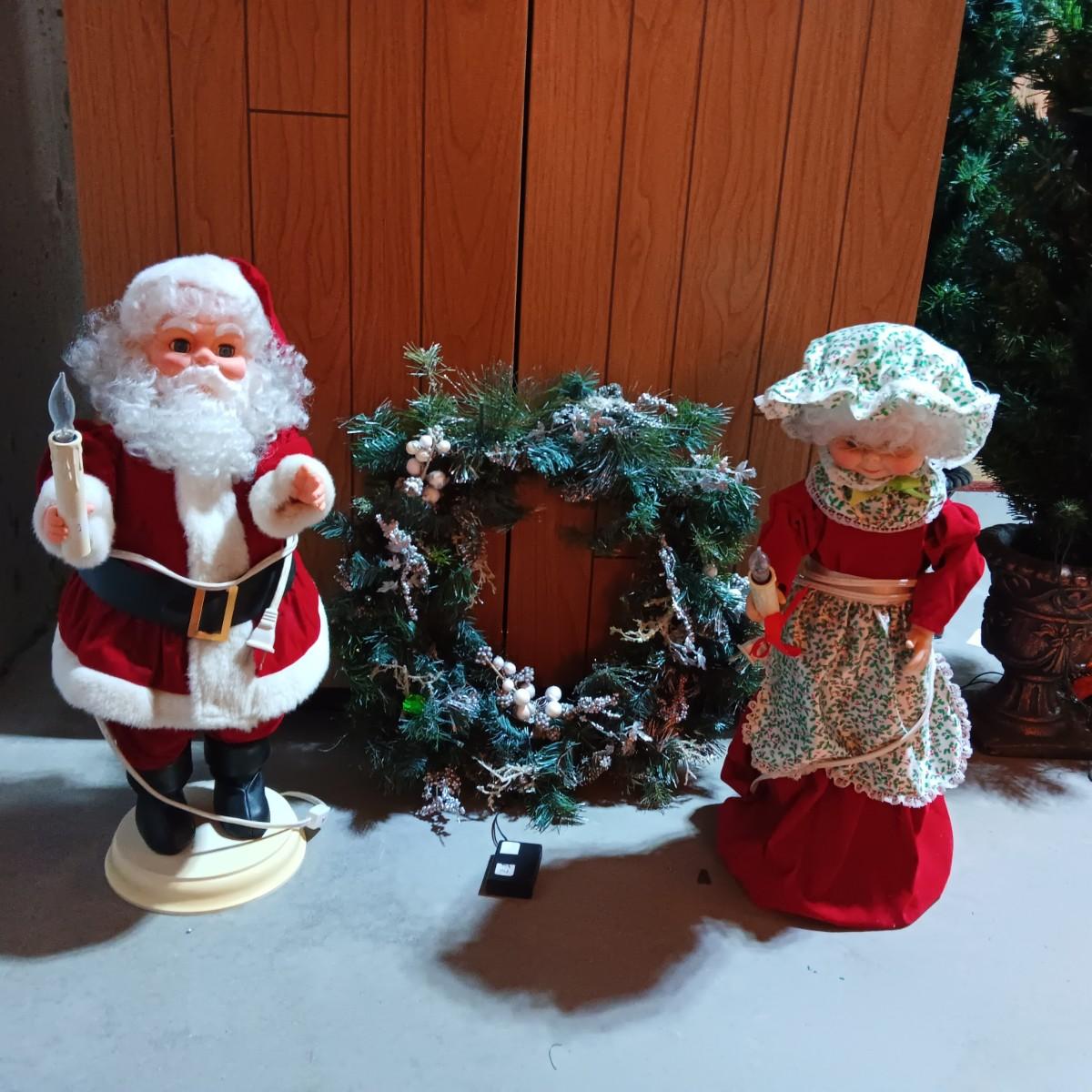 LITE SANTA AND MRS CLAUS PLUS A WREATH