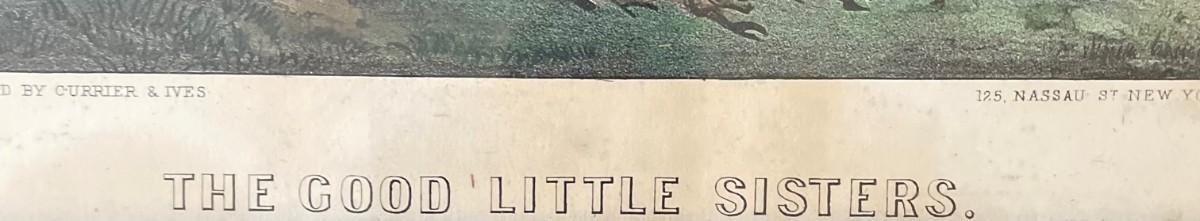 Description: Litho, Currier & Ives, The Good Little Sisters; Material: Litho Paper, Glass; Measurements: 17 x 13 (Framed), 13.25 x 9.25 (No Frame)