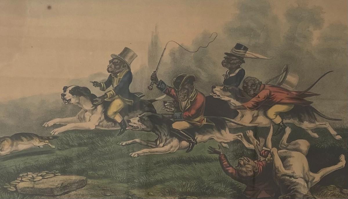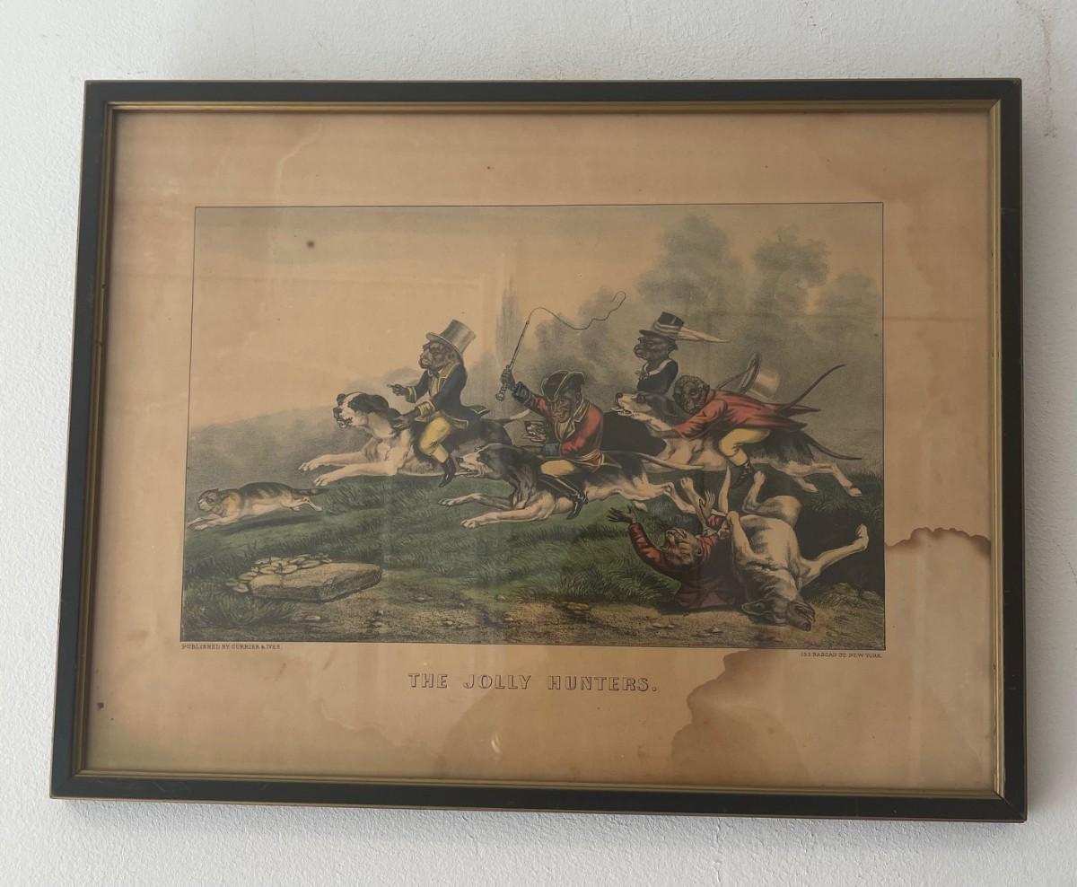 Description: Litho, Currier & Ives, The Jolly Hunters; Material: Litho Paper, Glass; Measurements: 13 x 15.75 (Framed), 12 x 15.75 (No Frame)