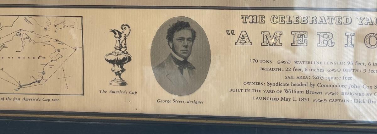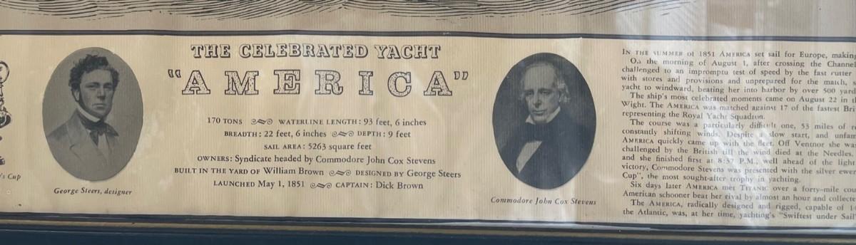 Description: The celebrated Yacht/ AMERICA/ Syndicate headed by Commodore John Cox Stevens built in the yard of William Brown; Measurement approximate: 17”x21” (framed); 16”x20” (image); Material: Lithograph on paper