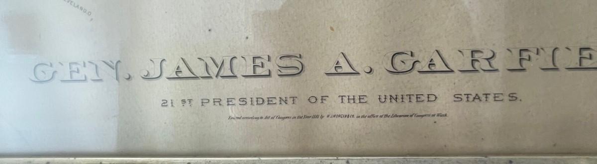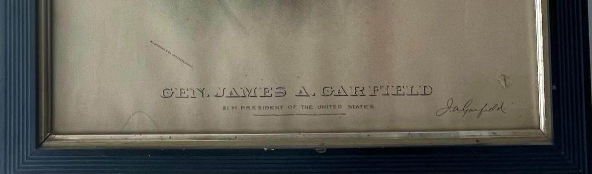 Description: Litho, W. J. Morgan & Co, Gen. James A. Garfield; Material: Litho Paper, Glass; Measurements: 27.5 x 23.5 (Framed), 23.5 x 20 (No Frame)
