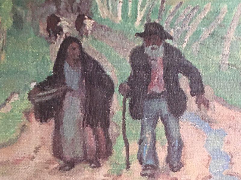 Lithograph of a work by E. Martin Henning - French Frarmers in Countryside 21" x 25" Frame lot 135