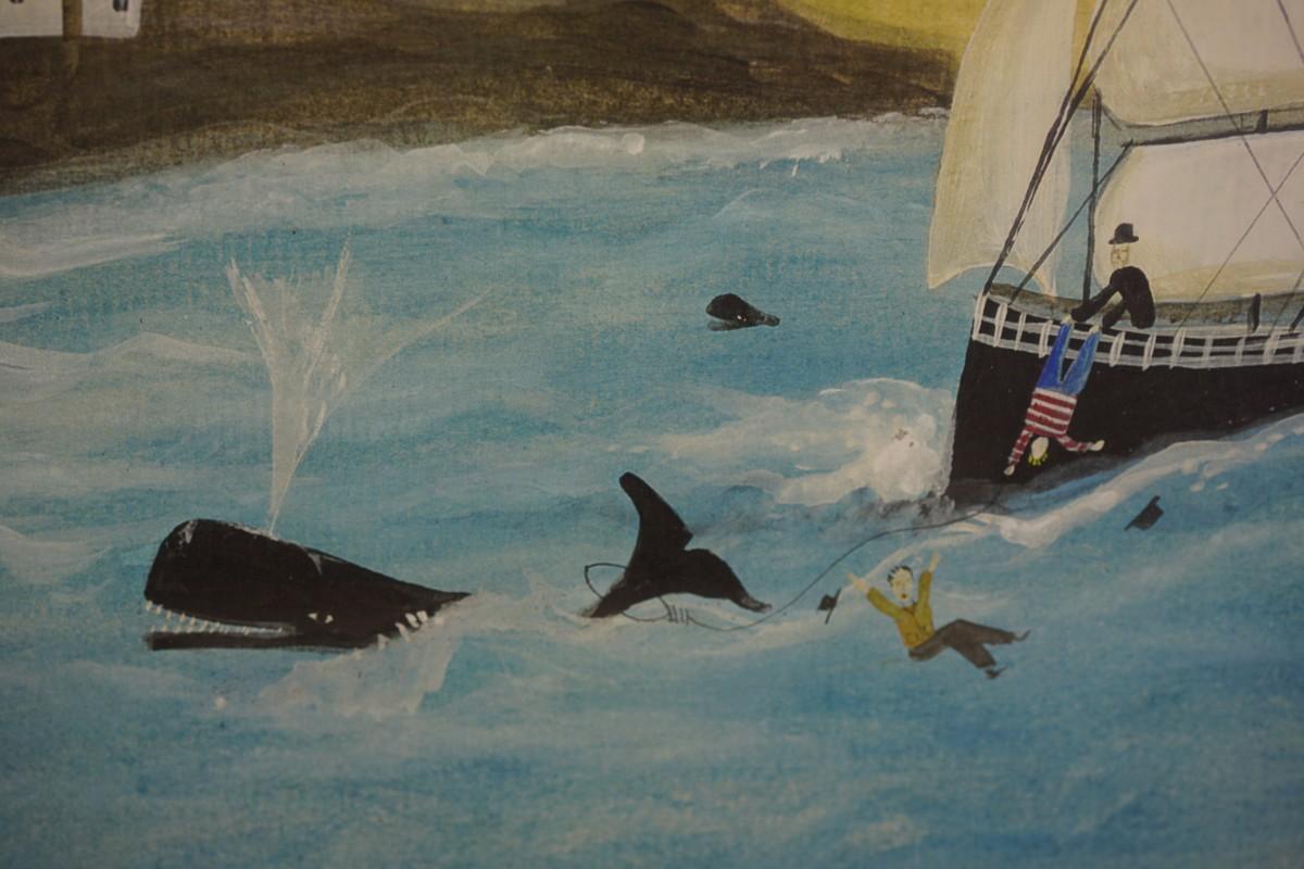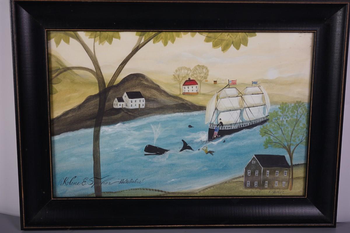 LITHOGRAPH OF "THE WHALERS" FOLK ART NUMBERED AND PENCILED SIGNED.