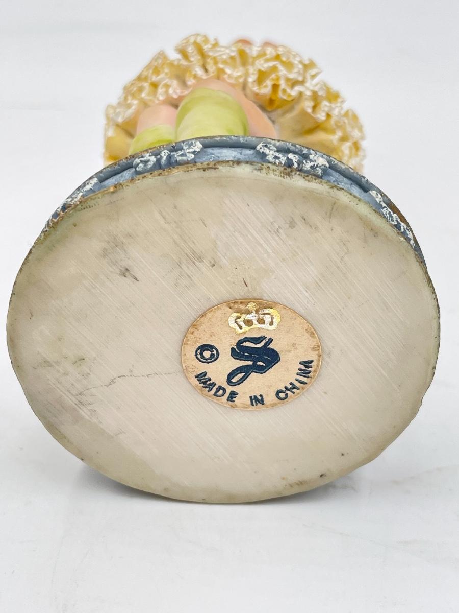 Larger figurine is marked with an “S” on the bottom, unsure of maker. All three in good condition.