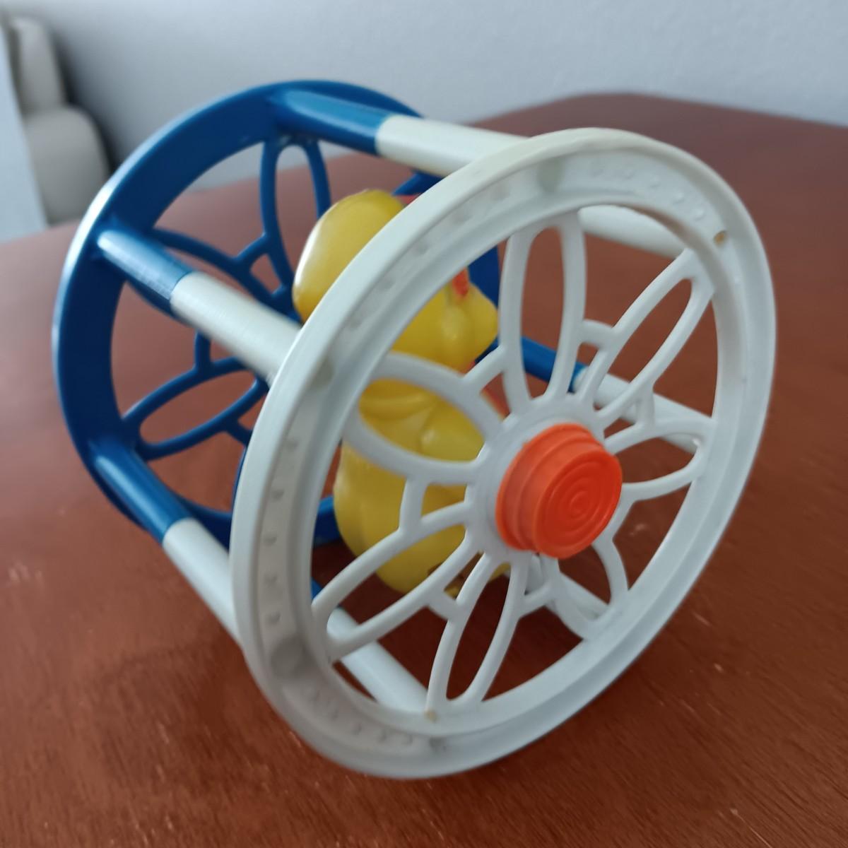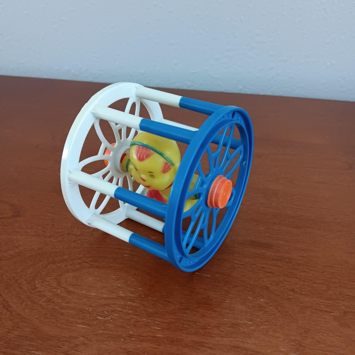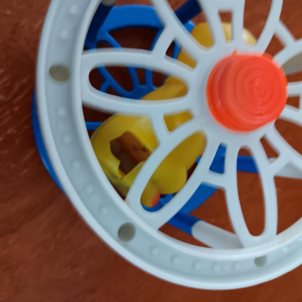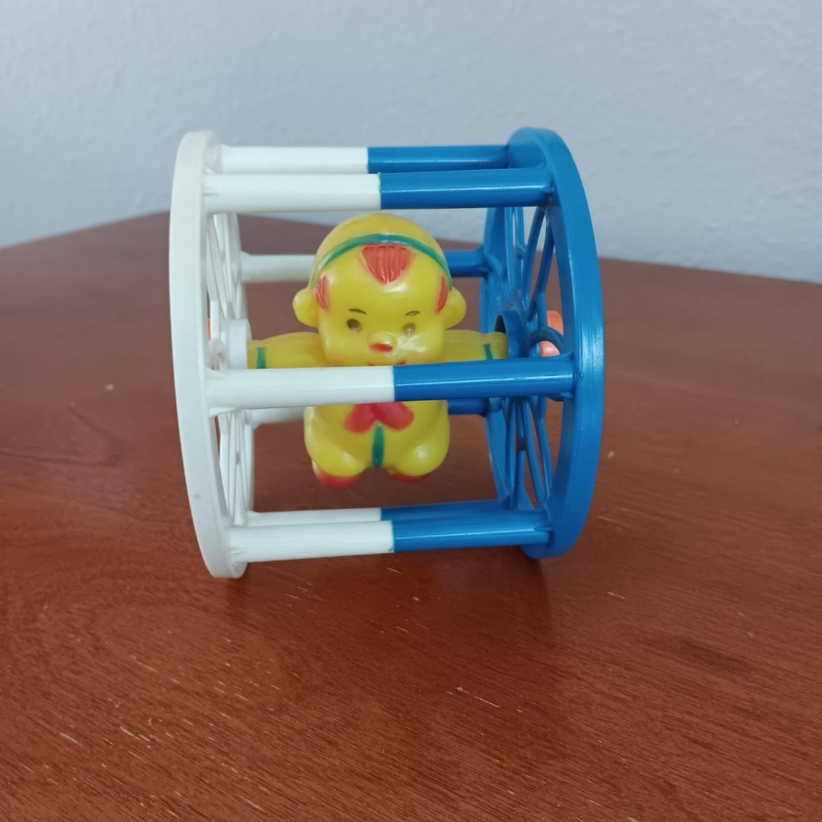 25" TALL, THERE IS DAMAGE TO THE LITTLE YELLOW GUY IN THE TOYY (SEE PIC)