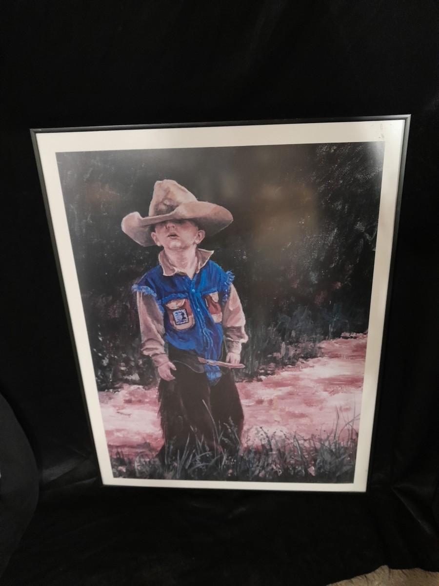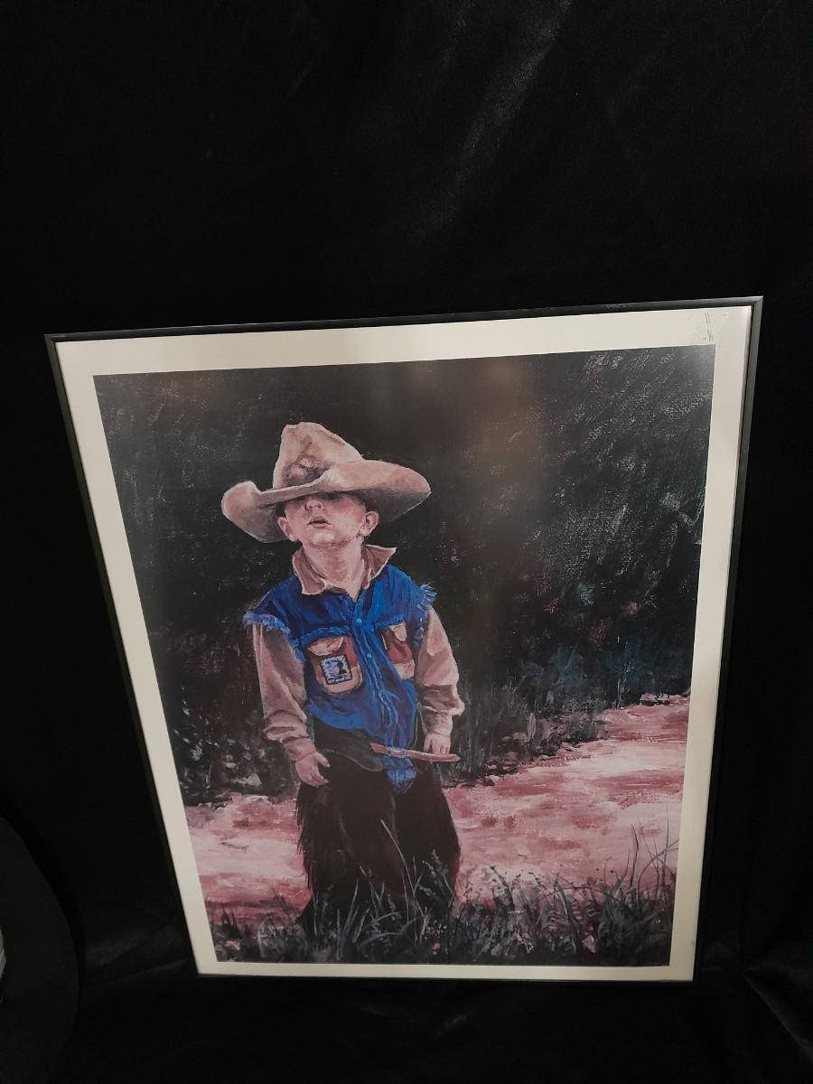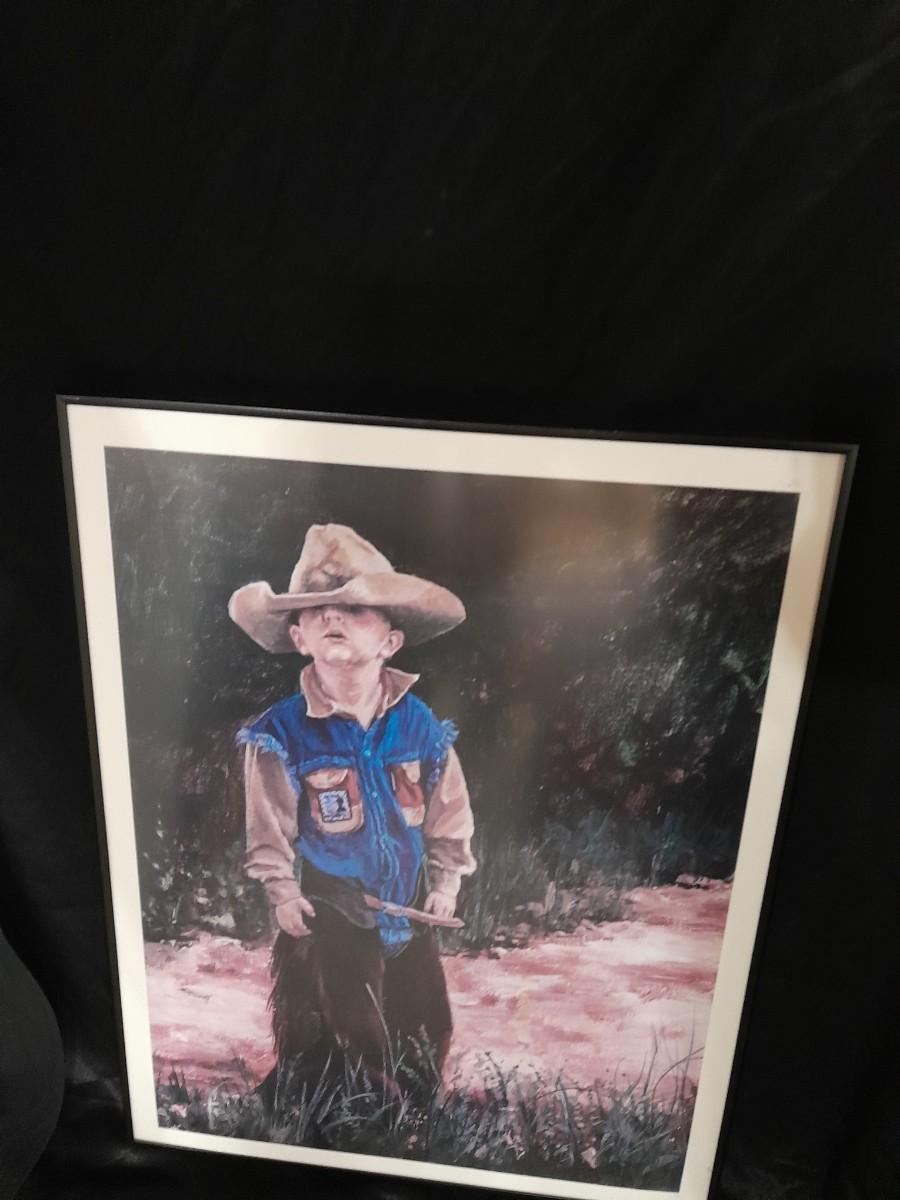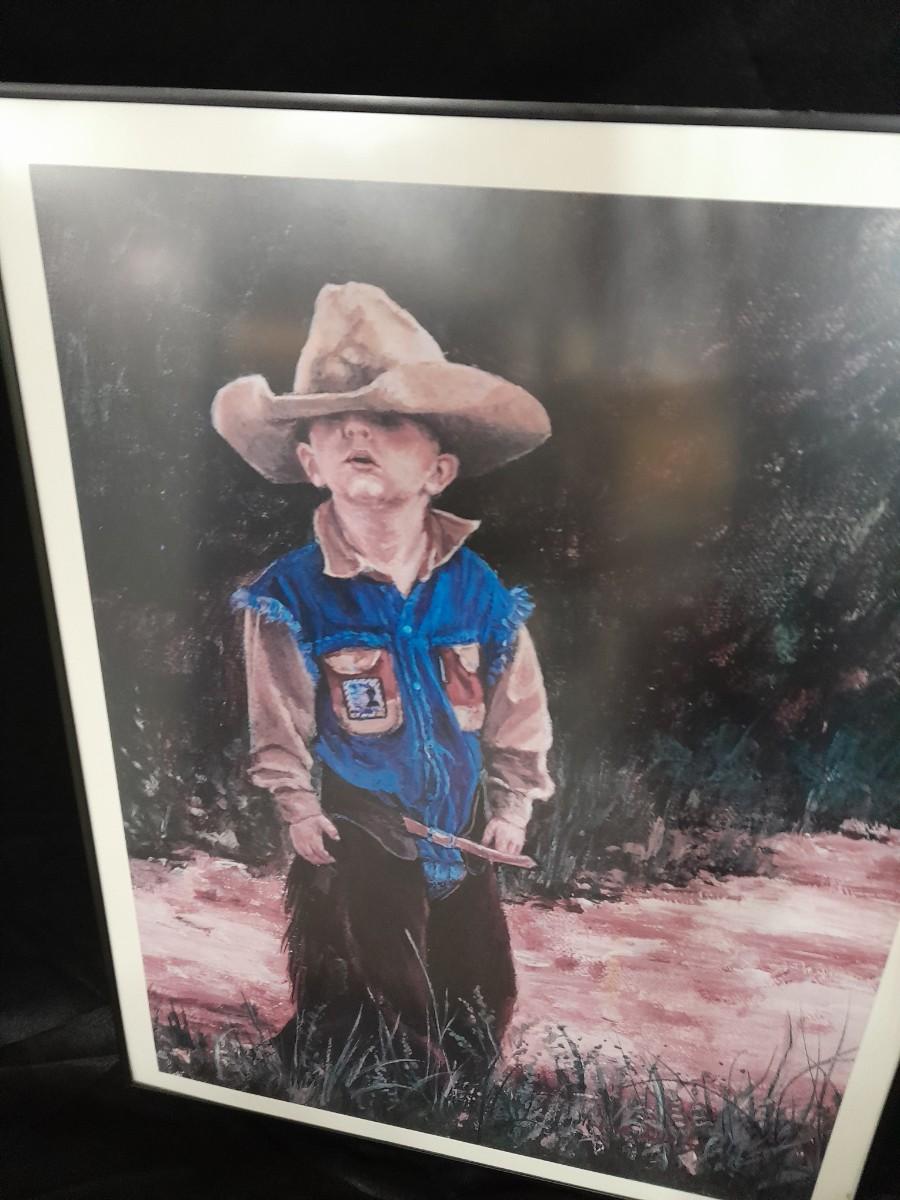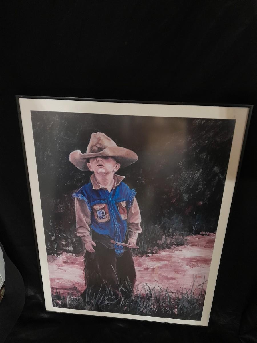 Little cowboy - Raise them right - framed western artwork. This is an adorable, framed piece! 28" x 20"