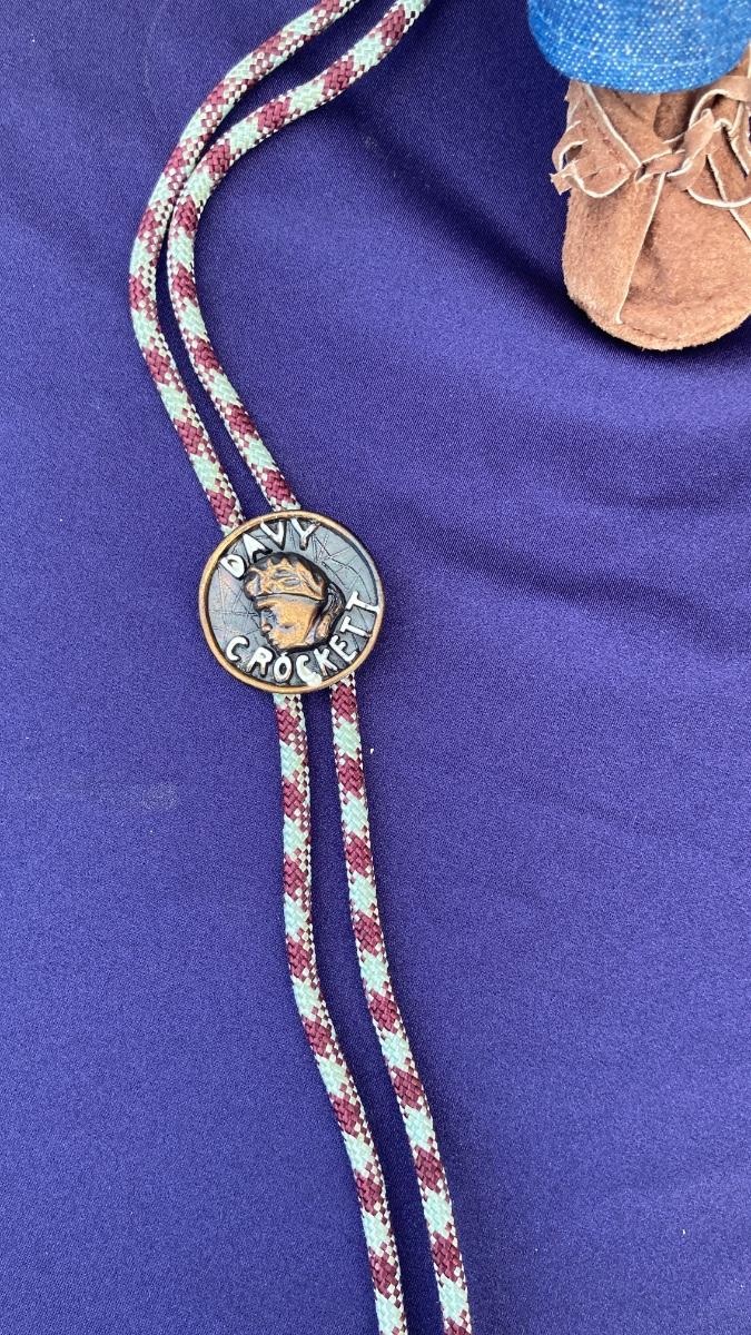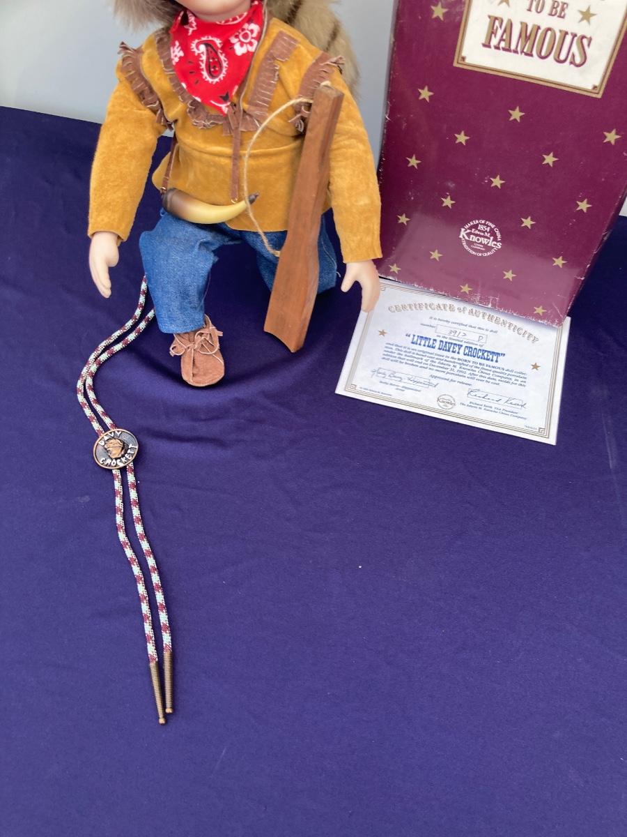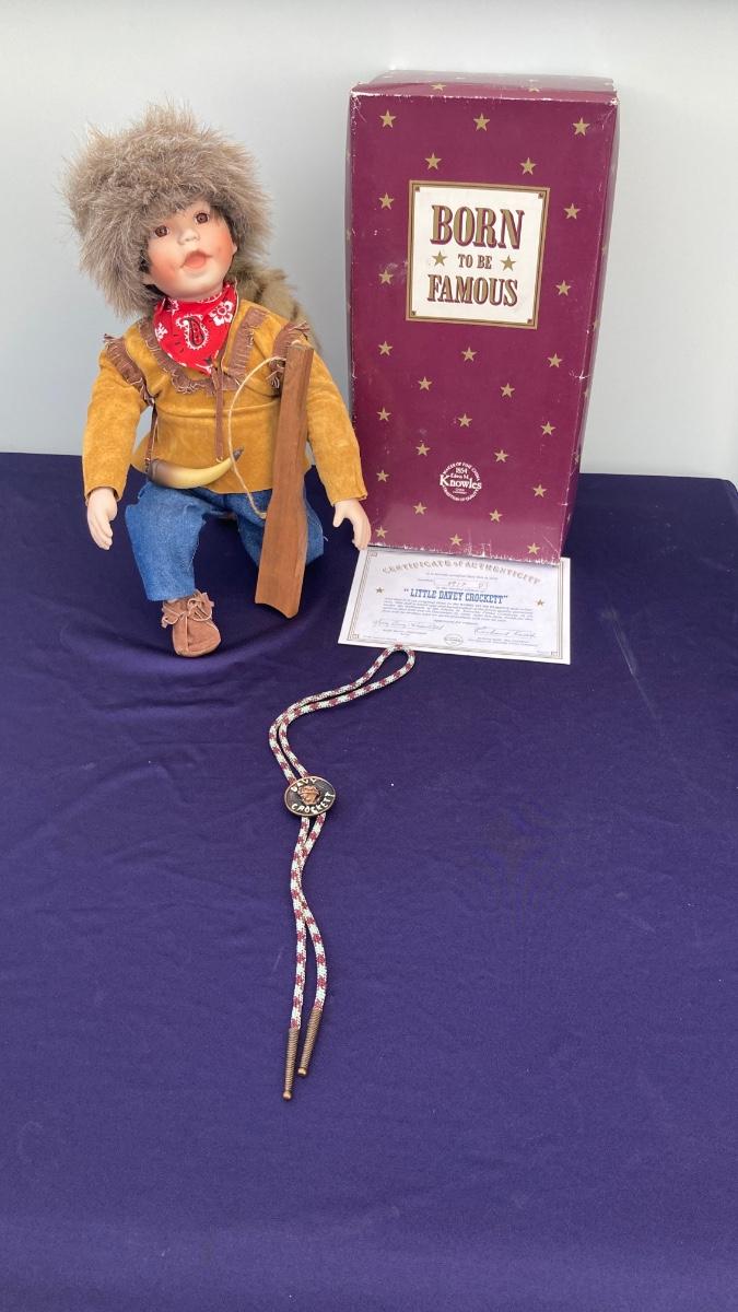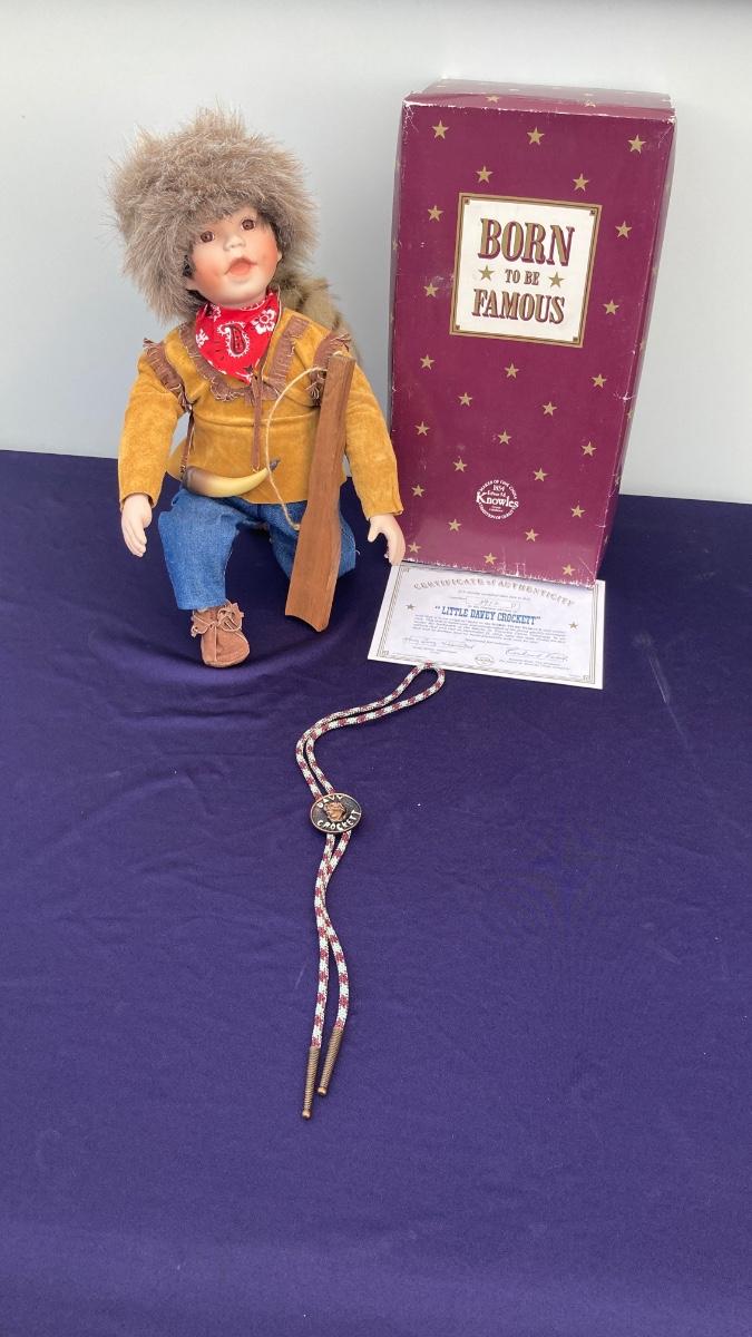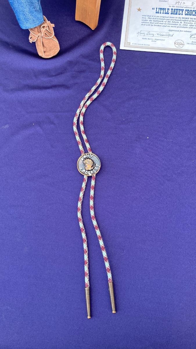 LITTLE DAVEY CROCKET WITH CERTIFICATE OF AUTHENTICITY AND VINTAGE DAVEY CROCKET BOLO