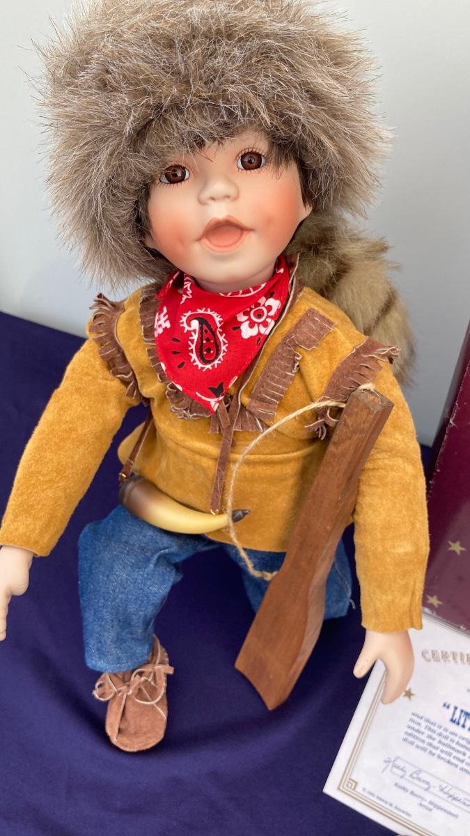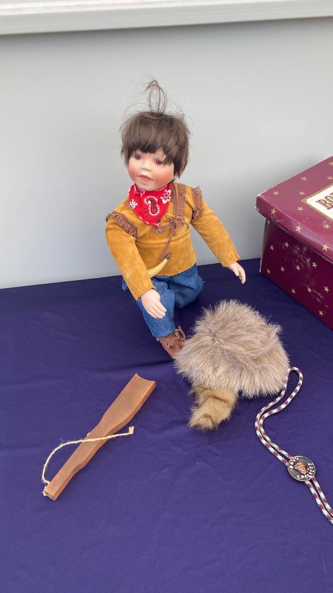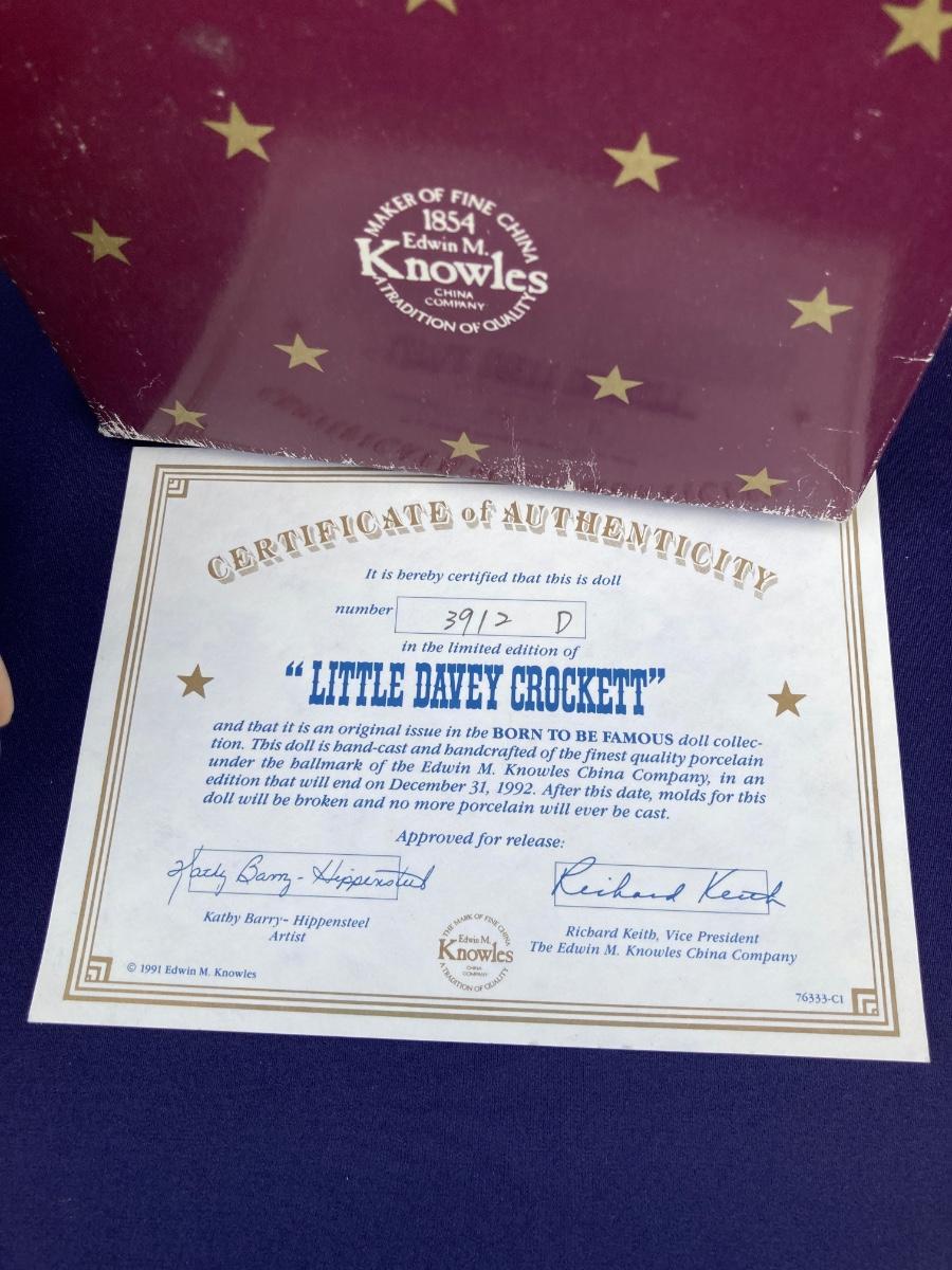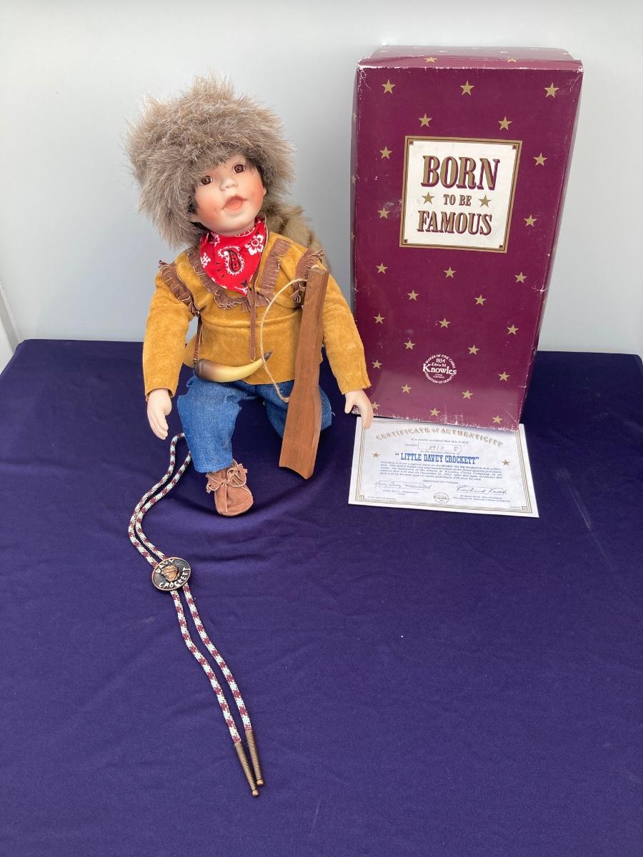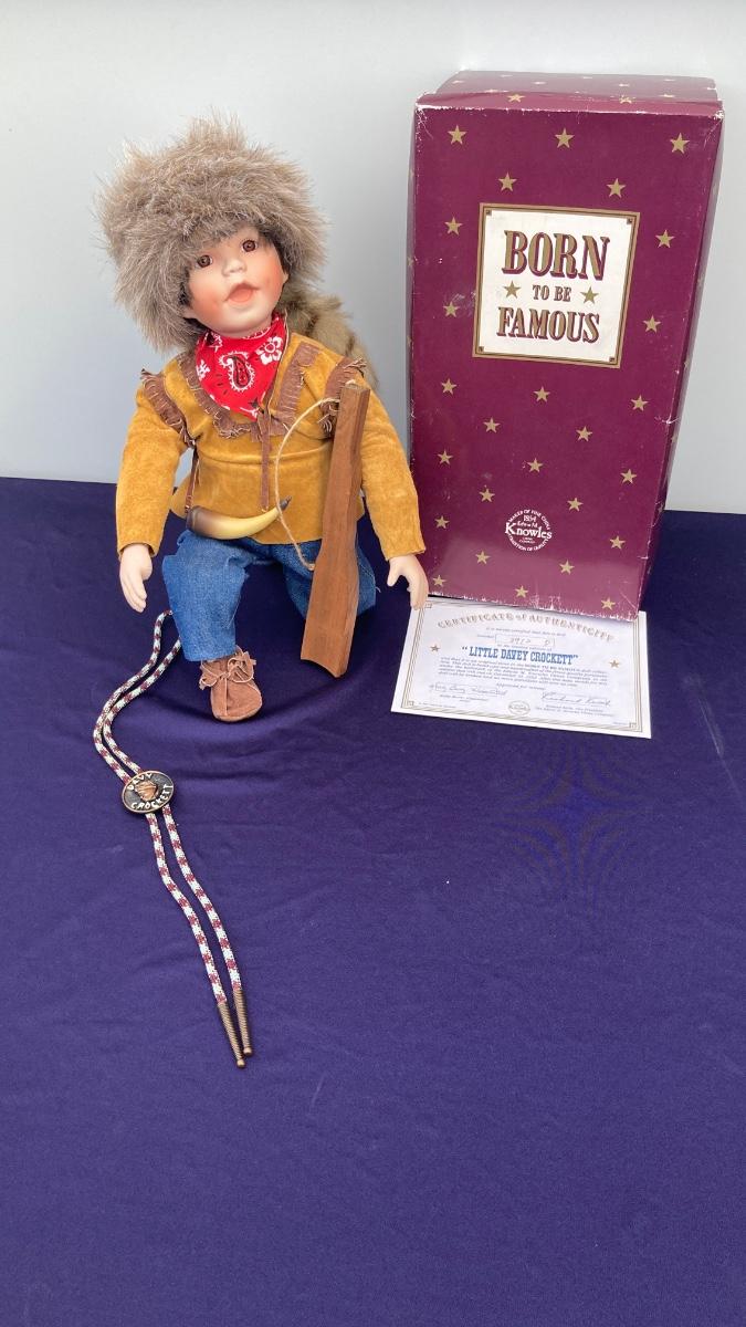 LITTLE DAVEY CROCKET WITH CERTIFICATE OF AUTHENTICITY AND VINTAGE DAVEY CROCKET BOLO
