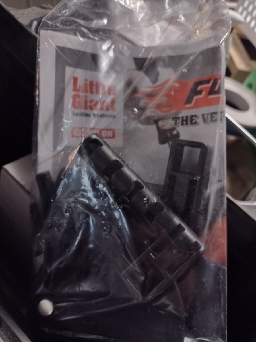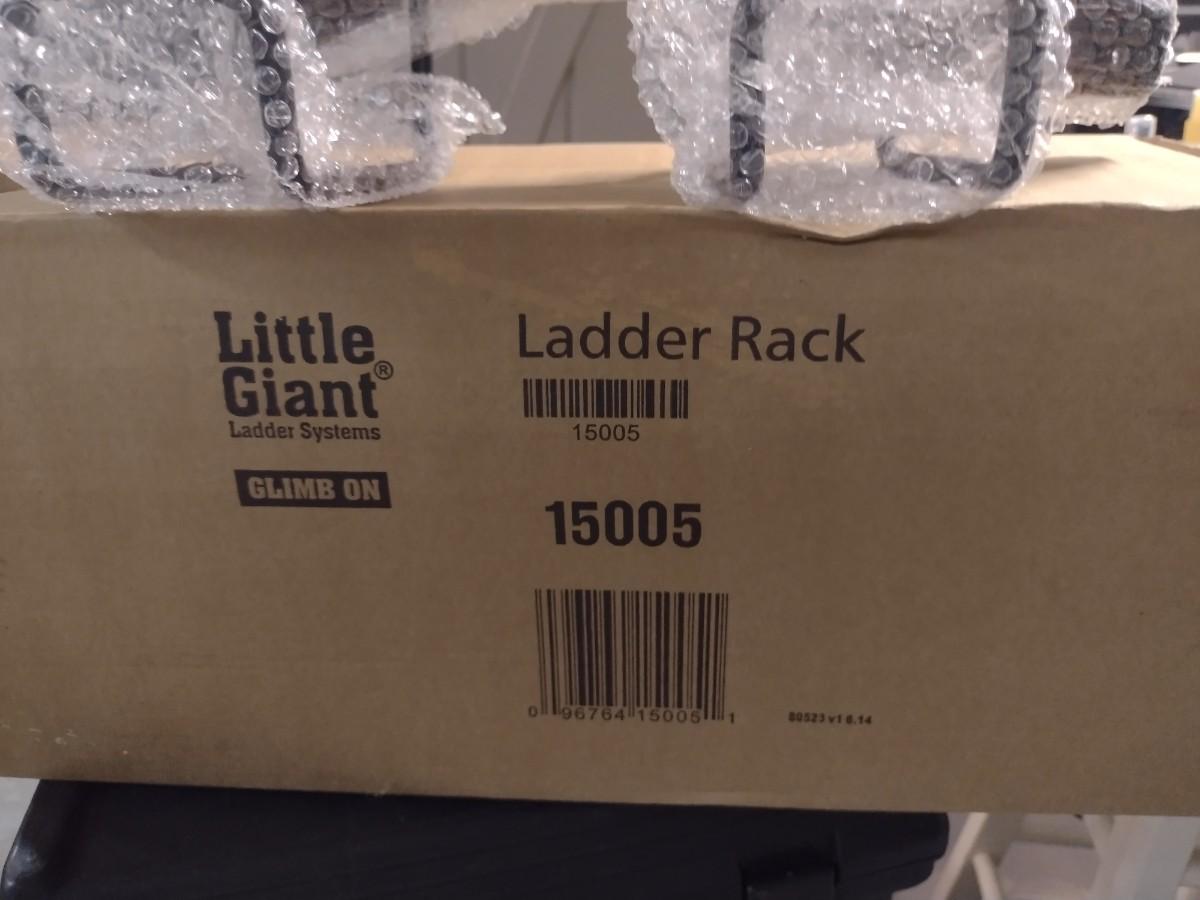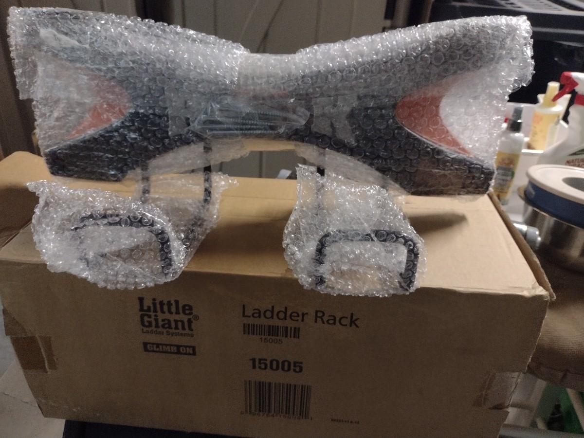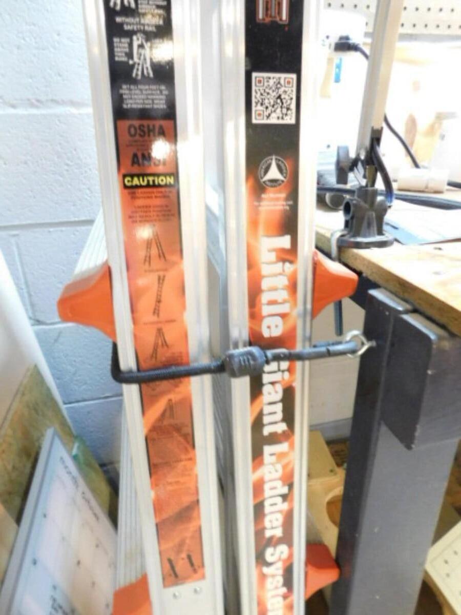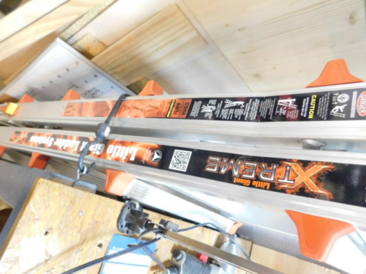 Little Giant Ladder Xtreme with Accessories. Ladder rack (for wall hanging storage), Fuel Tank paint tray, Air Deck (paint/hardware platform), and Wingspan (Wall standoff) included.
