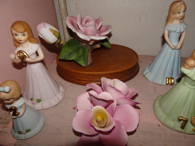 Little Girl Porcelain Birthday Figures, Capado-monte Porcelain Flower (Damaged)