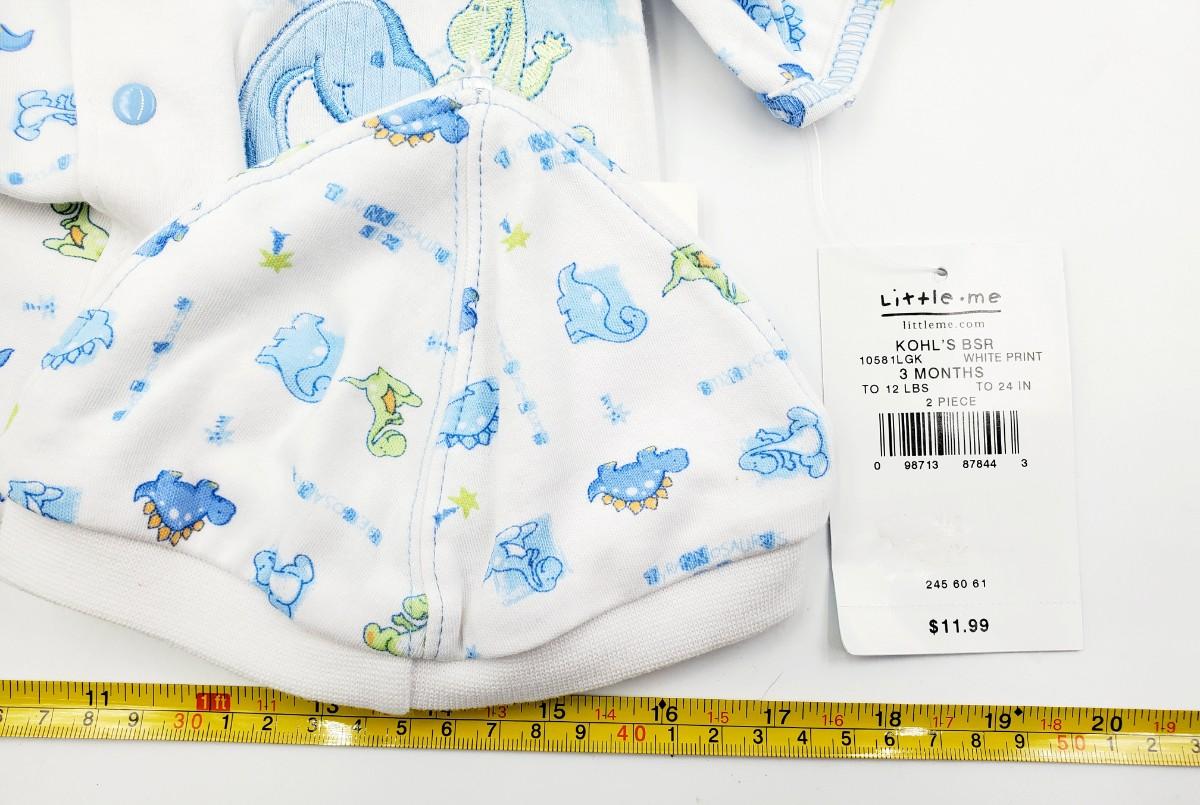 LITTLE ME 3 MONTH WHITE PRINT WITH DINOSAURS 2 PIECE NEW WITH TAGS