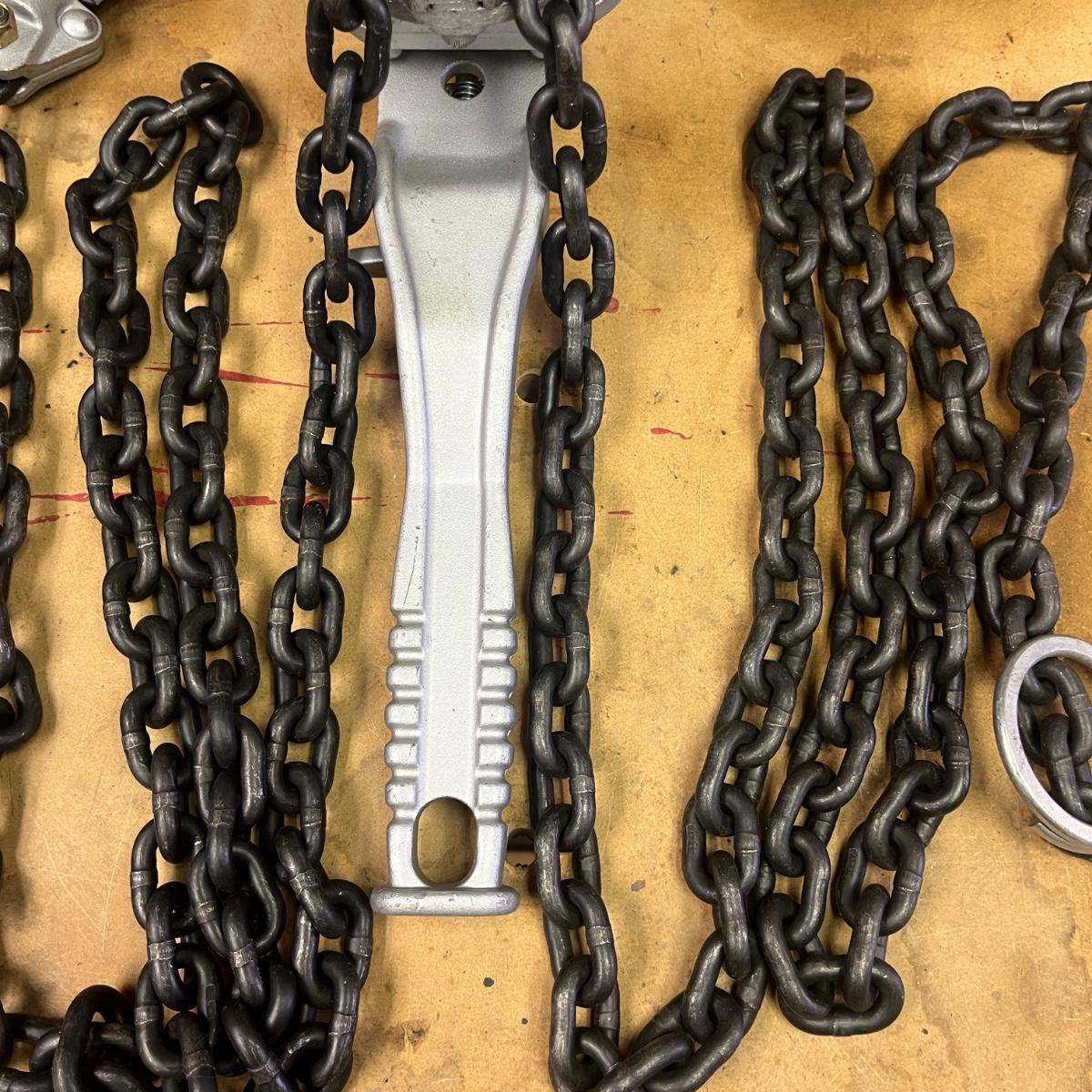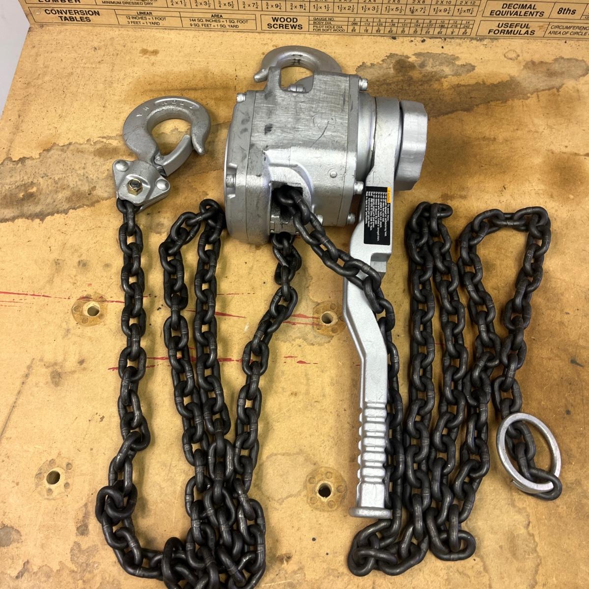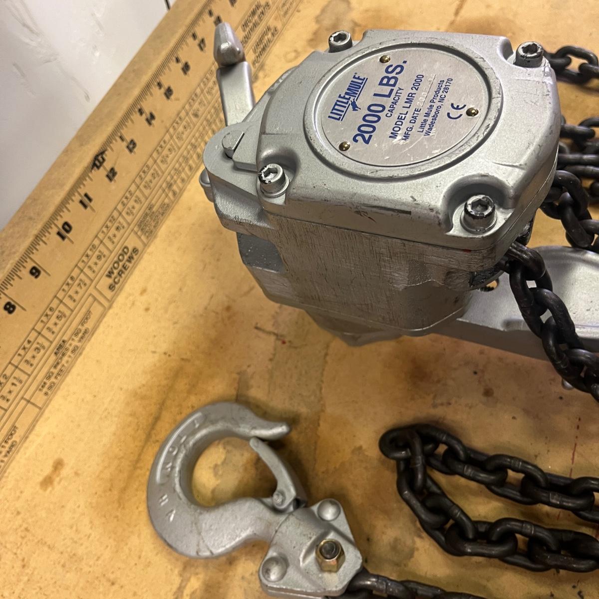 Lot includes a Little Mule 2000-pound capacity level chain hoist. Hoist measures 6.5” x 4.5” x 17.5” long.