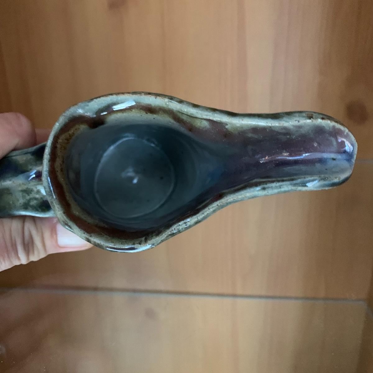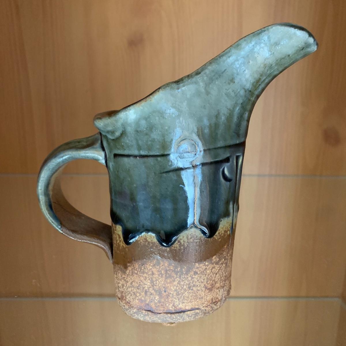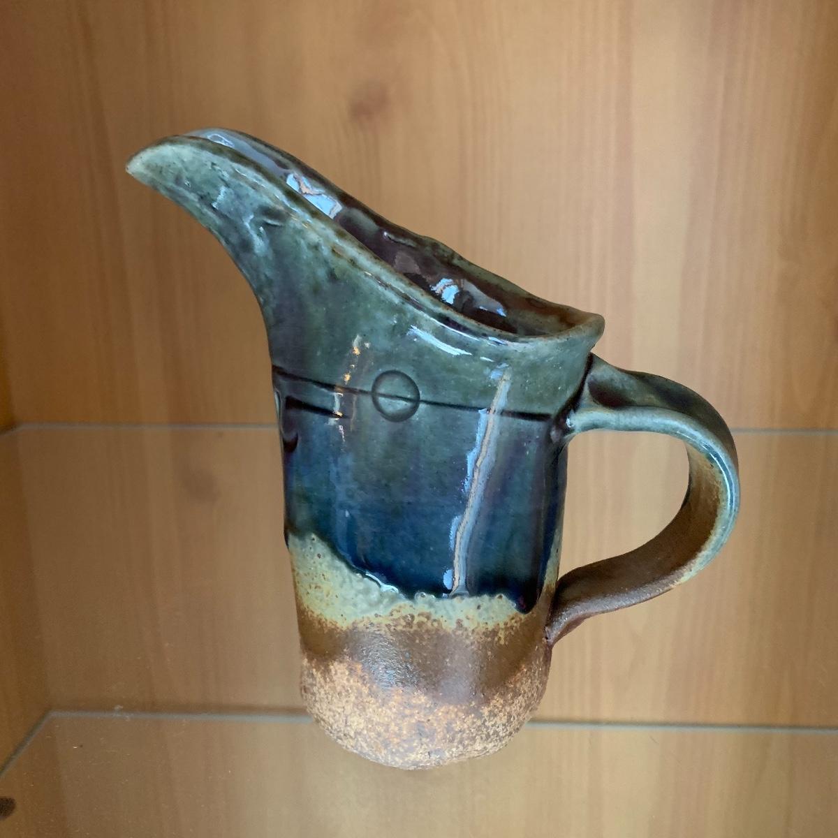Lot includes a little pottery pitcher that is two toned and unsigned. Pitcher measures 2.5” x 5.5” x 6”.
