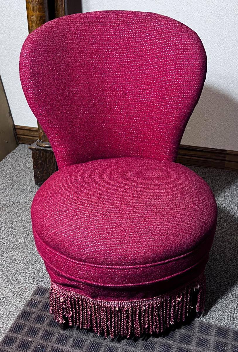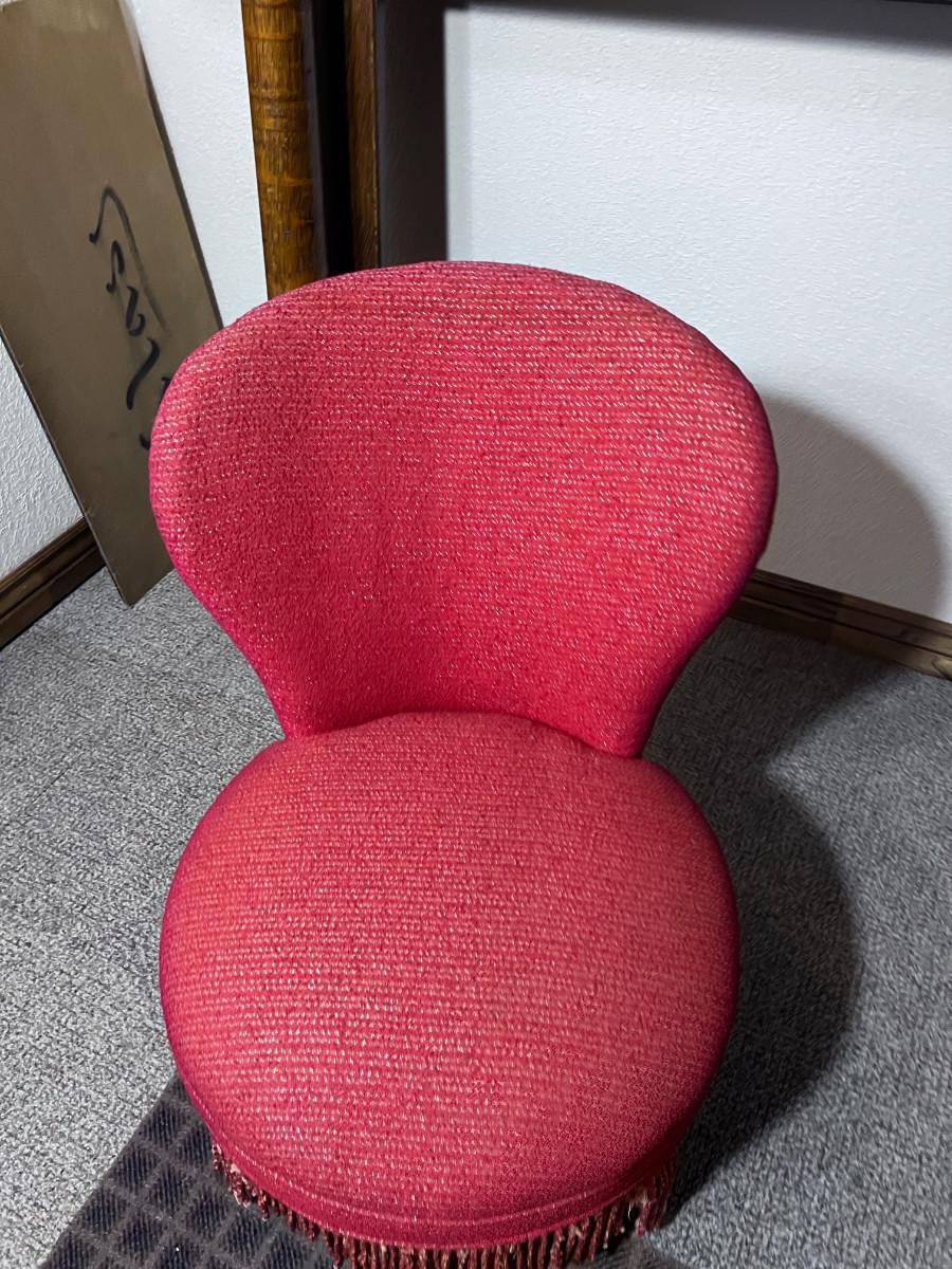 Little Red Slipper Chair with Fringe Trim BRING HELP TO MOVE OUT!!!!