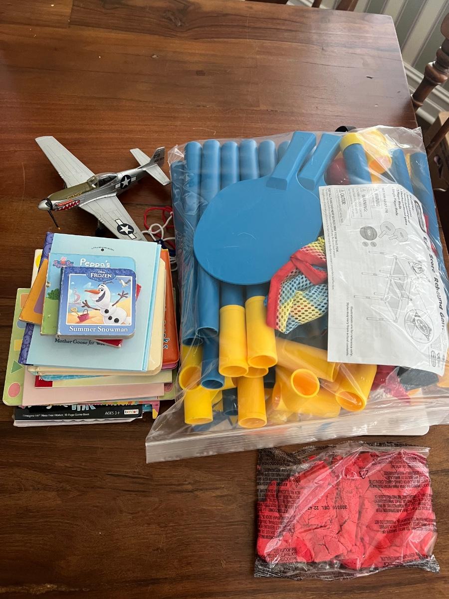 Also includes kinetic sand and model plane, with damaged rotor